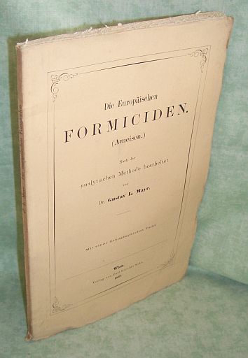 Entomologie – Insektenkunde Mayr, Gustav L.: Die Europäischen Formiciden nach der analytischen Methode bearbeitet. Wien. Gerold. 1861. 80 Seiten. 1 Tafel. Originalbrosch. Gustav L.Mayr (1830 – 1908, Wien) war ein bedeutender Entomologe, sein spezielles Arbeitsgebiet war die Ordnung der Hymenopteren. Seine Sammlung von 2180 Ameisenarten besitzt heute das Naturhistorische Museum in Wien.