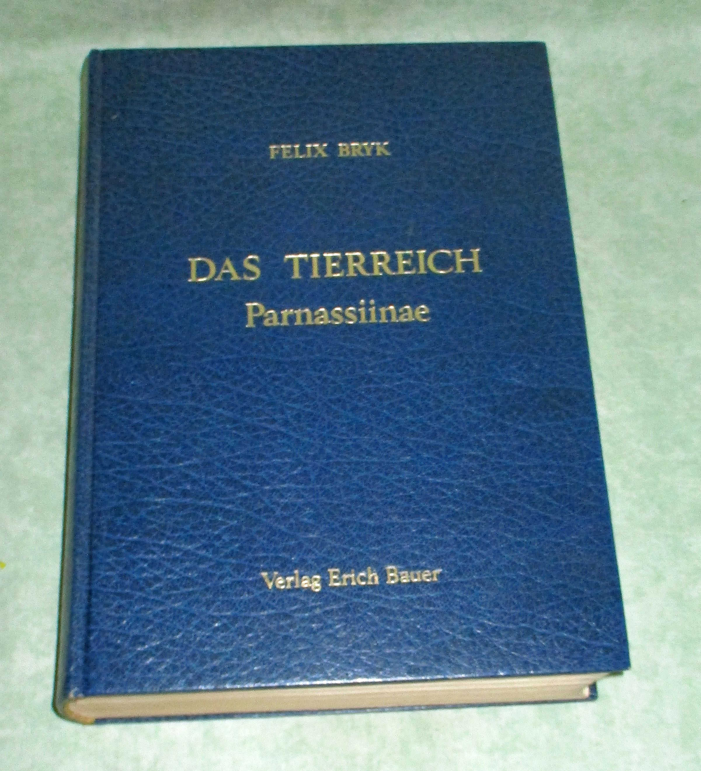 Lepidoptera – Schmetterlinge Bryk, Felix: Parnassiidae pars 2 (Subfam. Parnassiinae). Reprint der Ausgabe von 1935. Erich Bauer. 1984. LI, 790 Seiten 698 Illustrationen. Kunstleder mit goldgepr. Titel. Das Tierreich, 65 Lieferung, ; Lepidoptera.