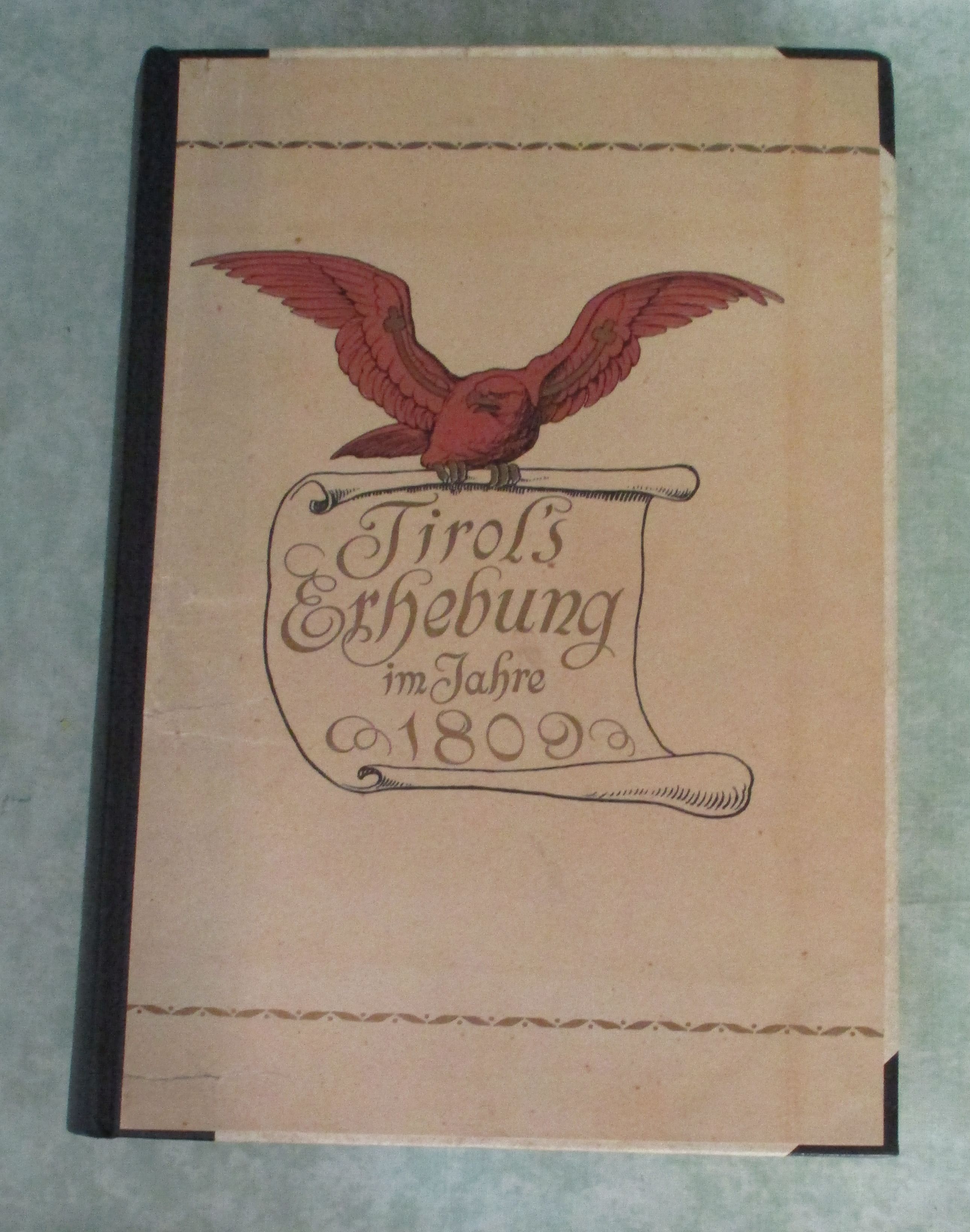 Tirol – Orts- und Landeskunde Hirn, Josef. Tirols Erhebung im Jahre 1809. Innsbruck. Haymon-Verlag, 1909. 4°. XVI, 875 Seiten, Frontispiz – Speckbacher bestellt die Absamer zur Erstürmung von Hall. Eine Beilage. Halbleinen. Neu gebunden unter Verwendung des Originaleinbandes. Bis auf die Stockflecken auf der Rückseite des Frontispiz ein gutes Ex.