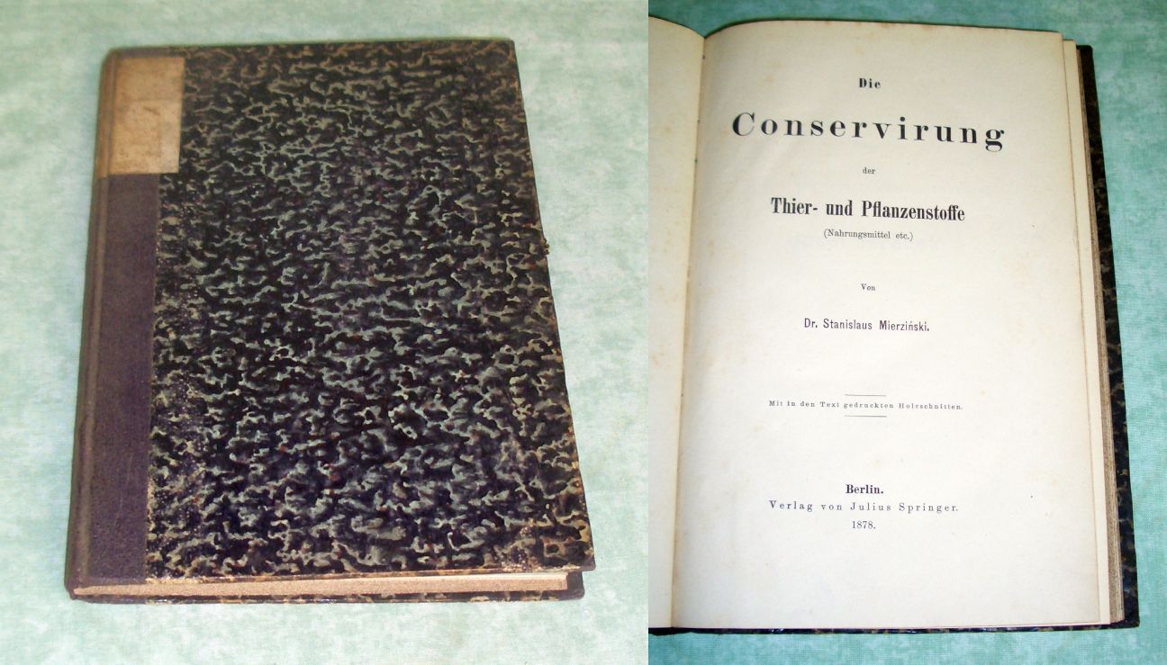 Biowissenschaften + Naturschutz Mierzinski, Stanislaus. Die Conservirung der Thier- und Pflanzenstoffe (Nahrungsmittel etc.) Berlin. Julius Springer. 1878. 166 Seiten. Halbleinen der Zeit. Ein gutes Ex.