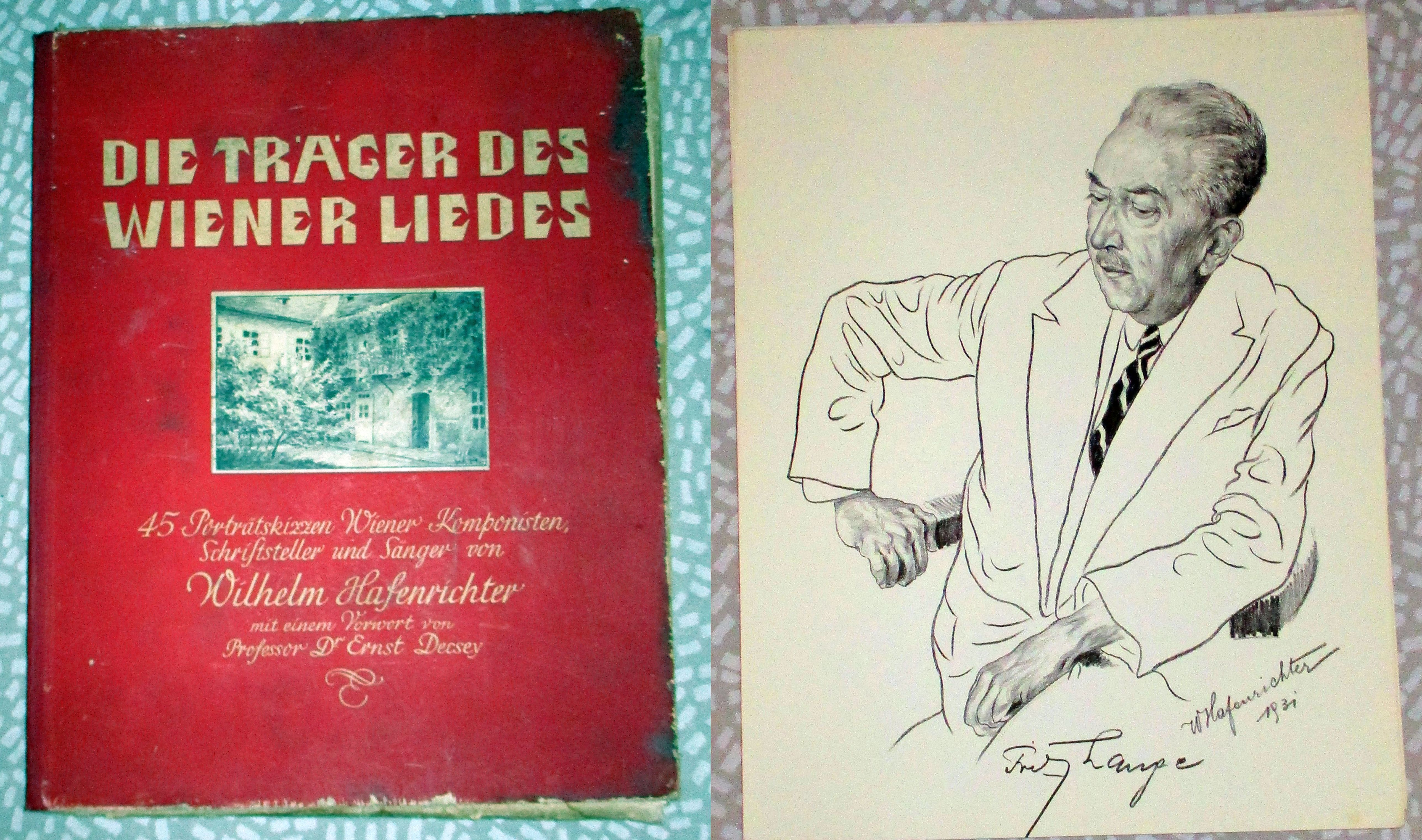 Österr. Musik-, Literatur- und Theatergeschichte Hafenrichter, Wilhelm: Die Träger des Wiener Liedes. 45 Porträtskizzen Wiener Komponisten, Schriftsteller u. Sänger. 1933. 31 x 39 cm. 2 Bl. 44 Tafeln. in Flügelmappe. (komplett – nur 44 Tafeln erschienen!) Mappe mit deutlichen Gebrauchsspuren (Kanten bestossen, staubfleckig) Die Blätter mit den Porträtskizzen in sehr gutem Zustand!