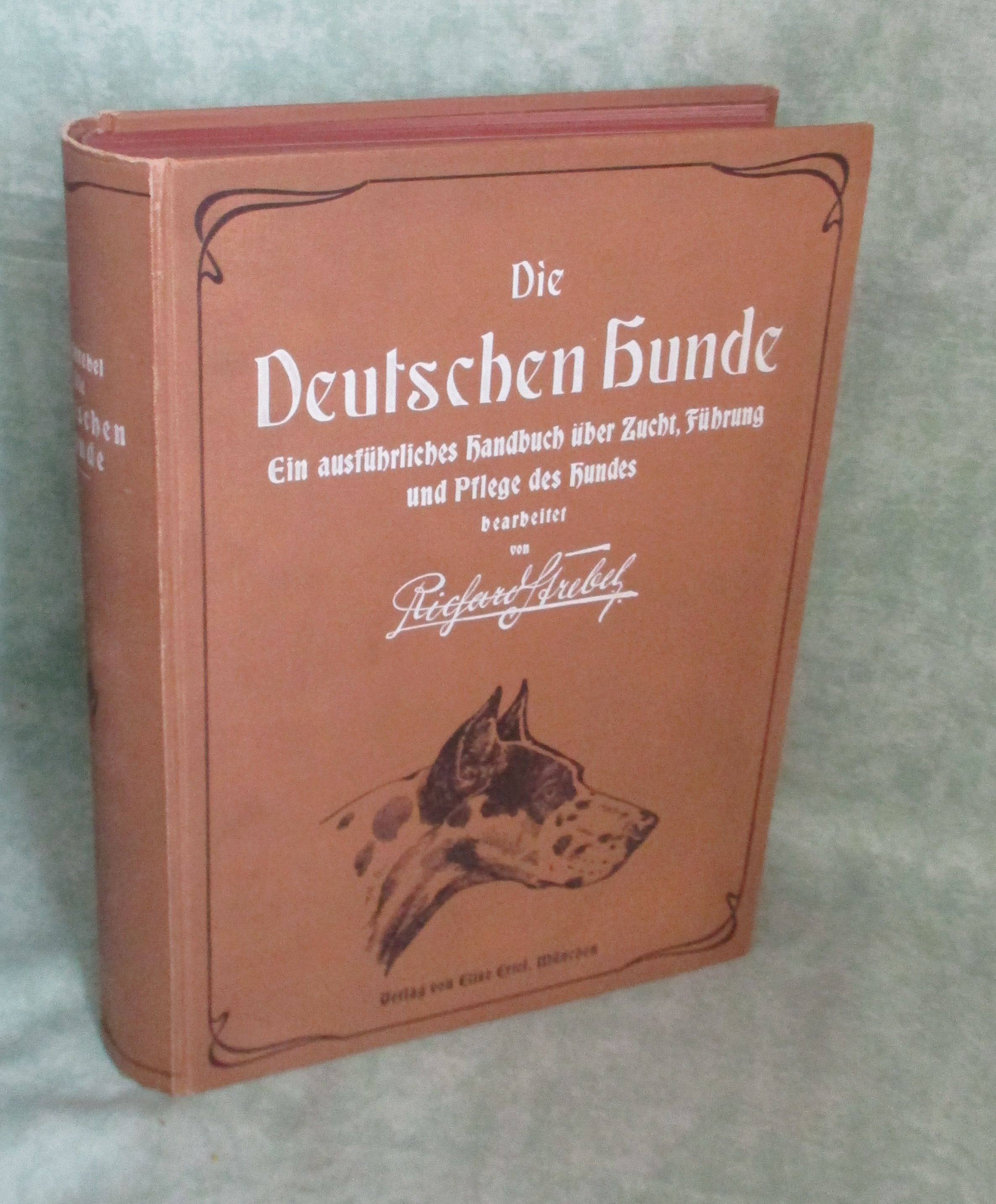 Hunde + Katzen Strebel, R. Die deutschen Hunde und ihre Abstammung mit Hinzuziehung und Besprechung sämtlicher Hunderassen. München. Elise Ertel. 1905. 4°. 343. 330 Seiten. 27 (17 farbige) Tafeln.Tierärztlicher Teil: 162 Seiten. Originalleinen. Am Vorsatz eine Widmung von alter Hand. Ansonsten ein makelloses Exemplar der Originalausgabe.