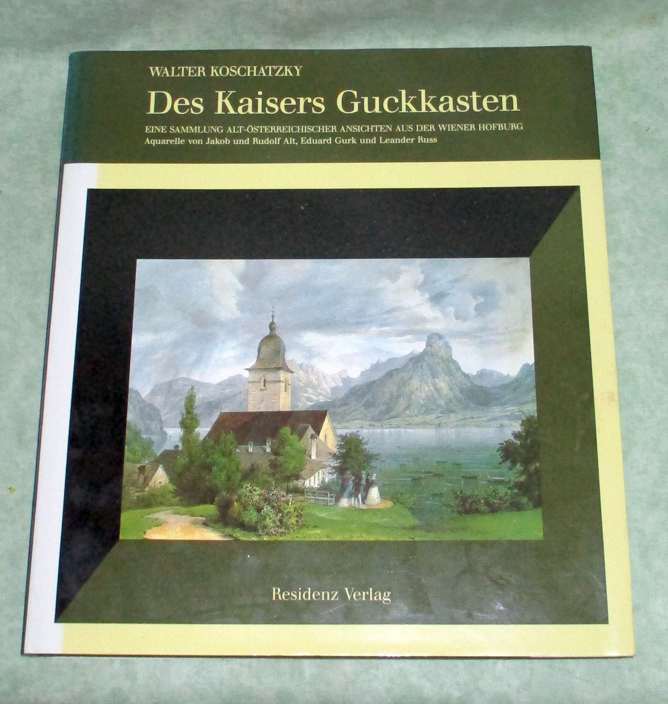 Österr. Kunst- und Architekturgeschichte Koschatzky, Walter. Des Kaisers Guckkasten. Eine Sammlung alt-österreichischer Ansichten aus der Wiener Hofburg. 2. Aufl. Salzburg. Residenz-Verlag. 1992. 281 Seiten, überw. Ill. Leinen mit Schutzumschlag. Ein gutes Ex. Veröffentlichung der Albertina, 27. Als die Photographie noch in der Zukunft lag, vom Diaprojektor ganz zu schweigen, bediente man sich des Guckkastens, um Bilder fremder Städte und Landschaften in der richtigen Perspektive in den eigenen vier Wänden betrachten zu können. Ein elitäres Vergnügen freilich, nicht so sehr des Apparates mit seinen Linsen und Spiegeln als vielmehr der Bilder wegen, die speziell für diesen Zweck gemalt werden mußten.“.So kam es, dass die anerkanntesten Aquarellmaler der Zeit – Eduard Gurk, Jakob und Rudolf von Alt und Leander Russ – vom Habsburger Ferdinand dem I. beauftragt wurden, die schönsten Plätze der österreichischen Monarchie und seiner Nachbarländer auf die Leinwand zu bringen.