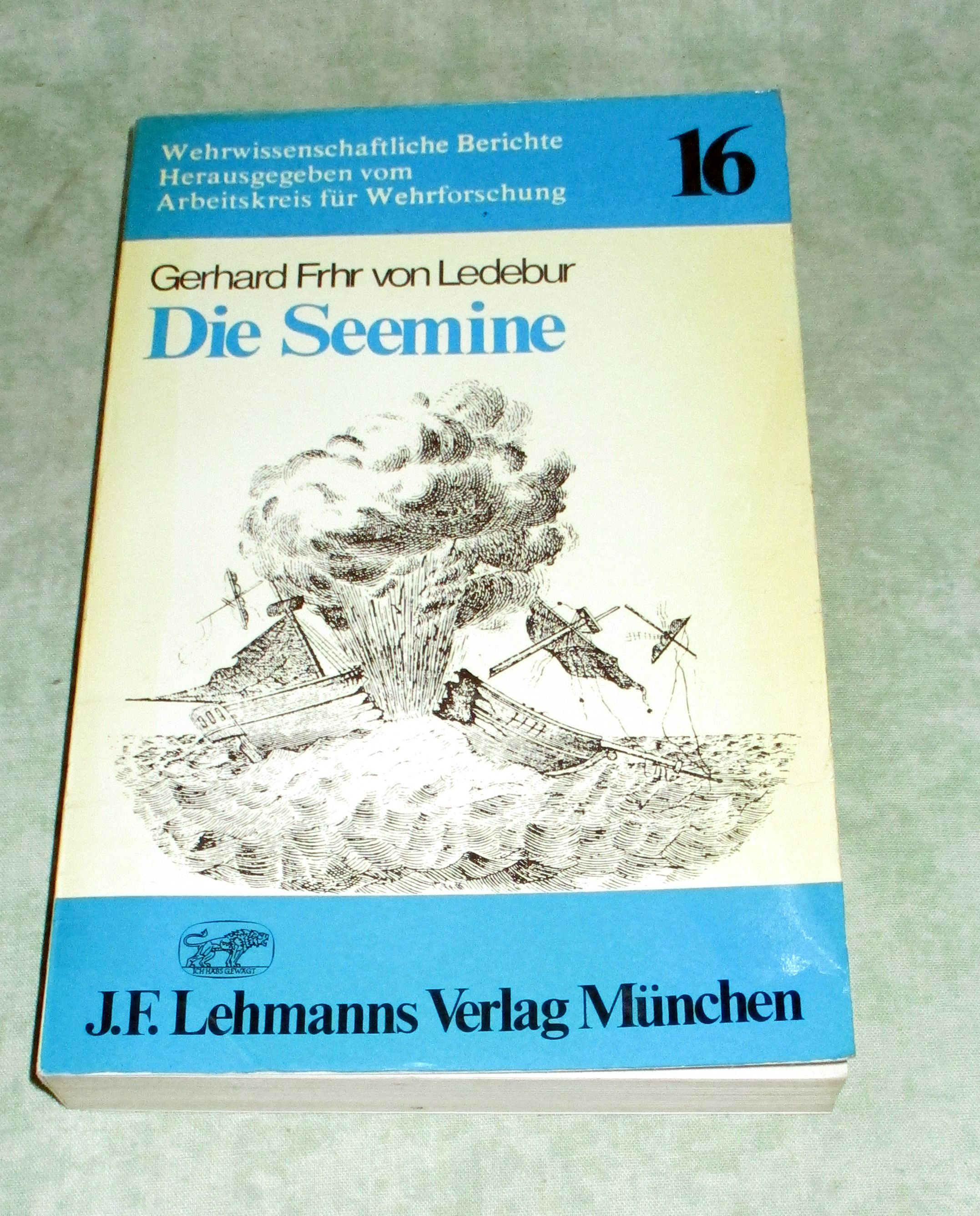 Marinegeschichte – Schiffe + Schifffahrt Ledebur, Gerhard von: Die Seemine. Geschichtliche Darstellung der Entwicklung der Seeminen u.d. Minenabwehr unter Einbeziehung d. Minenabwehrfahrzeuge mit Beispielen aus dem Minenkrieg und einer minenrechtichen Betrachtung. München. Lehmanns Verlag. 1977. 20 cm. VII, 220 Seiten, 165 Abbildungen. Mit leichten Gebrauchsspuren. Wehrwissenschaftliche Berichte, Bd. 16.