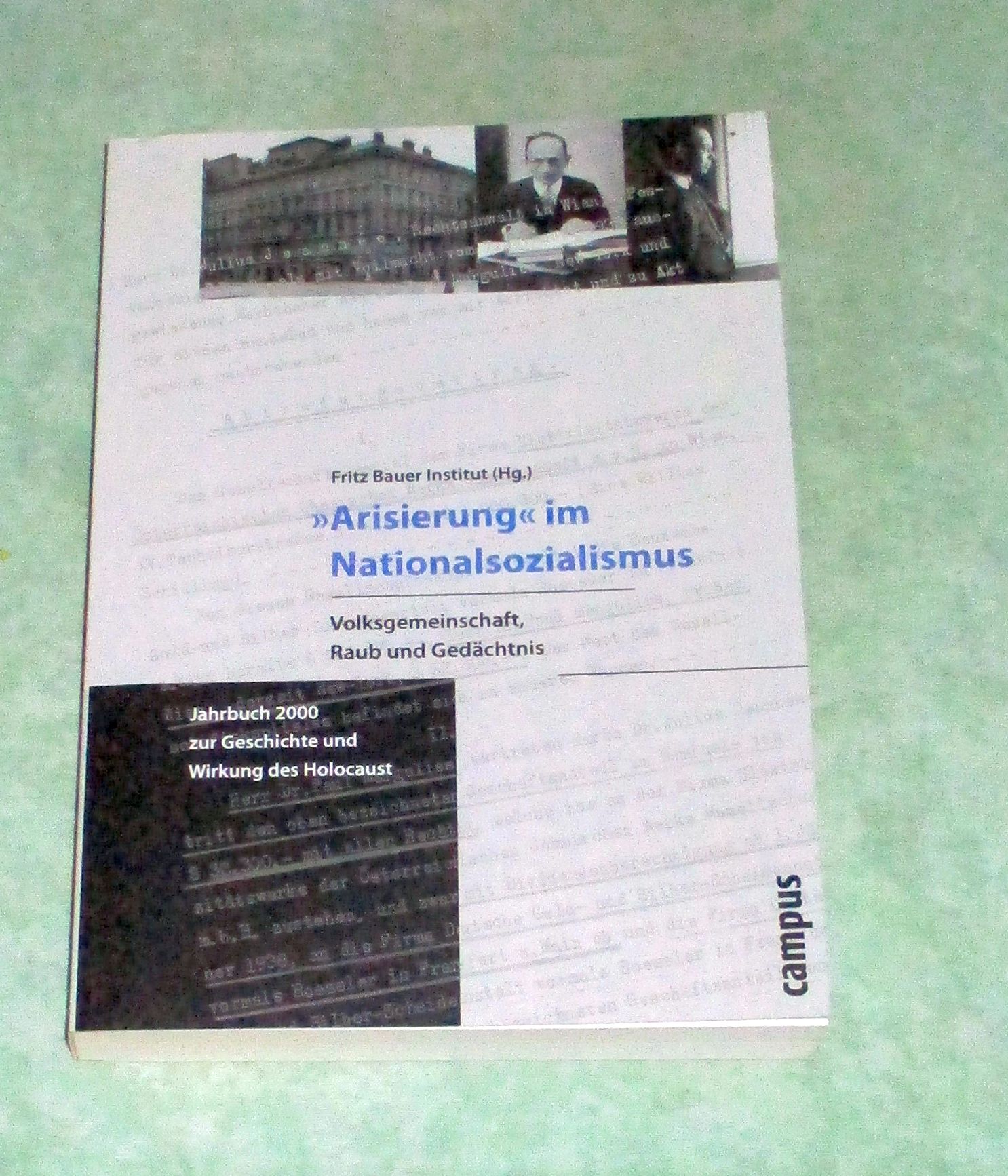 Geschichte + Zeitgeschichte Wojak, Irmtrud / Hayes, Peter (Hg.) „Arisierung“ im Nationalsozialismus. Volksgemeinschaft, Raub und Gedächtnis. Frankfurt/Main/New York, Campus-Verl., 2000. 21 cm. 312 Seiten, mit einigen Abb. Paperback. Jahrbuch … zur Geschichte und Wirkung des Holocaust, 2000.
