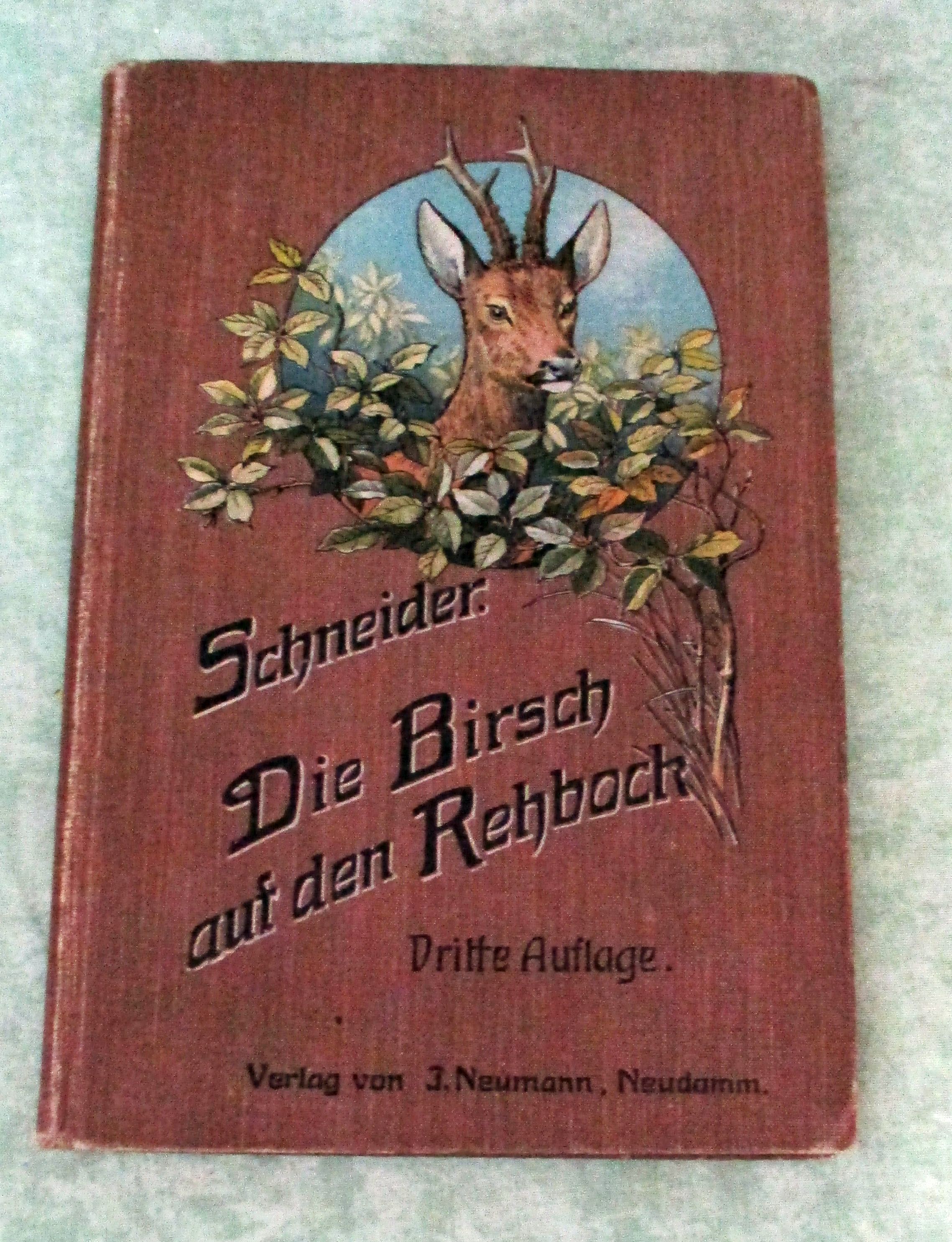 Jagd Schneider, Carl. Die Birsch auf den Rehbock oder sein Abschuss mit der Büchse auf Birsch und Anstand beim Blatten und Drücken. 3. Auflage nach dem Tode des Verfassers hrsg. von der Red. der Deutschen Jäger-Zeitung. Neudamm. Neumann. 1907. 115 Seiten, zahlr. Abb. Illustr. Originalleinen. Einband leicht berieben, insgesamt ein sehr gutes Ex.