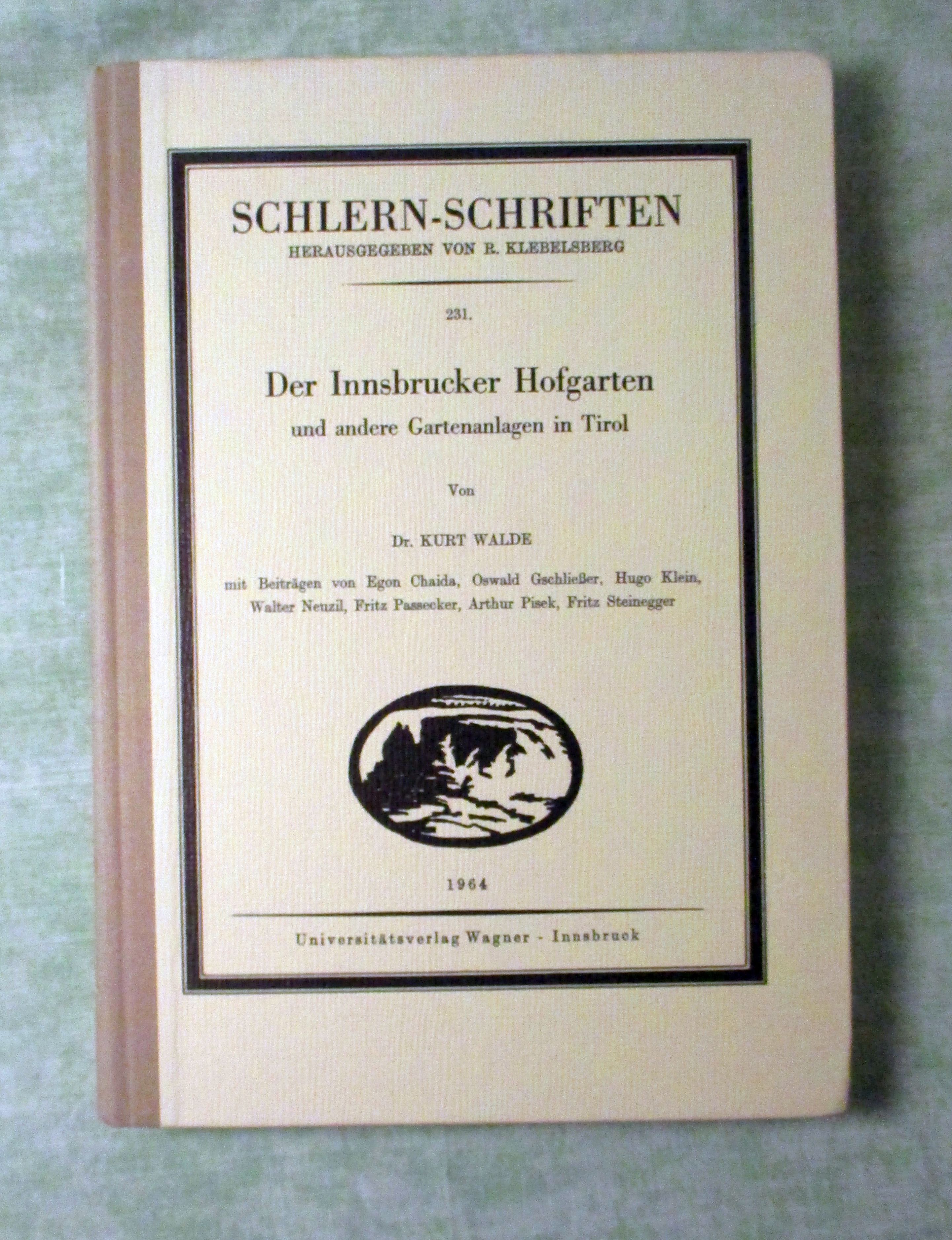 Tirol – Orts- und Landeskunde Walde, Kurt. Der Innsbrucker Hofgarten und andere Gartenanlagen in Tirol. Innsbruck. Wagner. 1964. 245 S. Ill., Kt. Schlern-Schriften, 231.