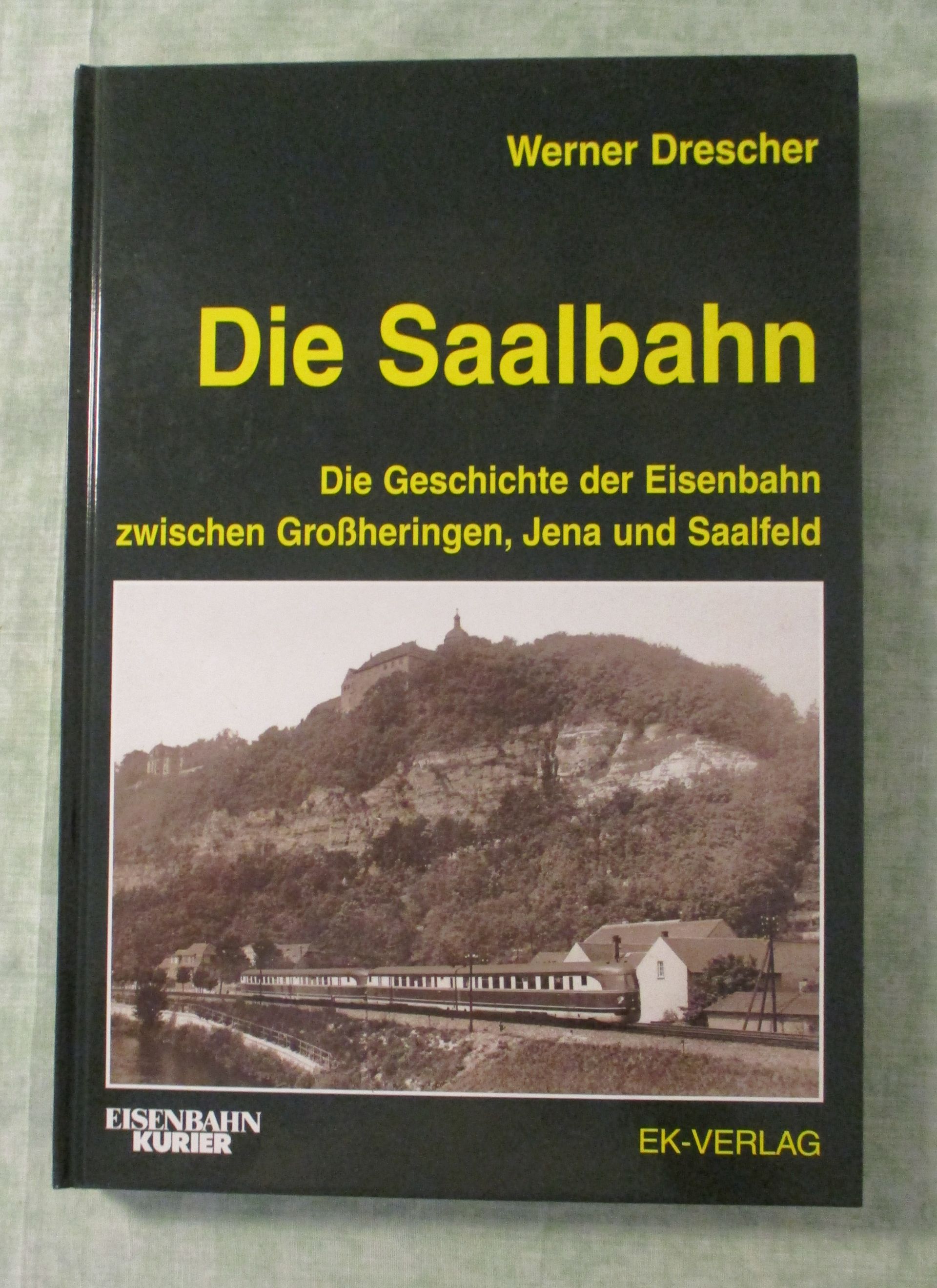 Eisenbahn Drescher, Werner: Die Saalbahn. Die Geschichte der Eisenbahn zwischen Großheringen, Jena und Saalfeld. Freiburg. EK-Verlag. c 2004. 30 cm. 200 Seiten, zahlr. Illustrationen. Hardcover. Gutes Ex.