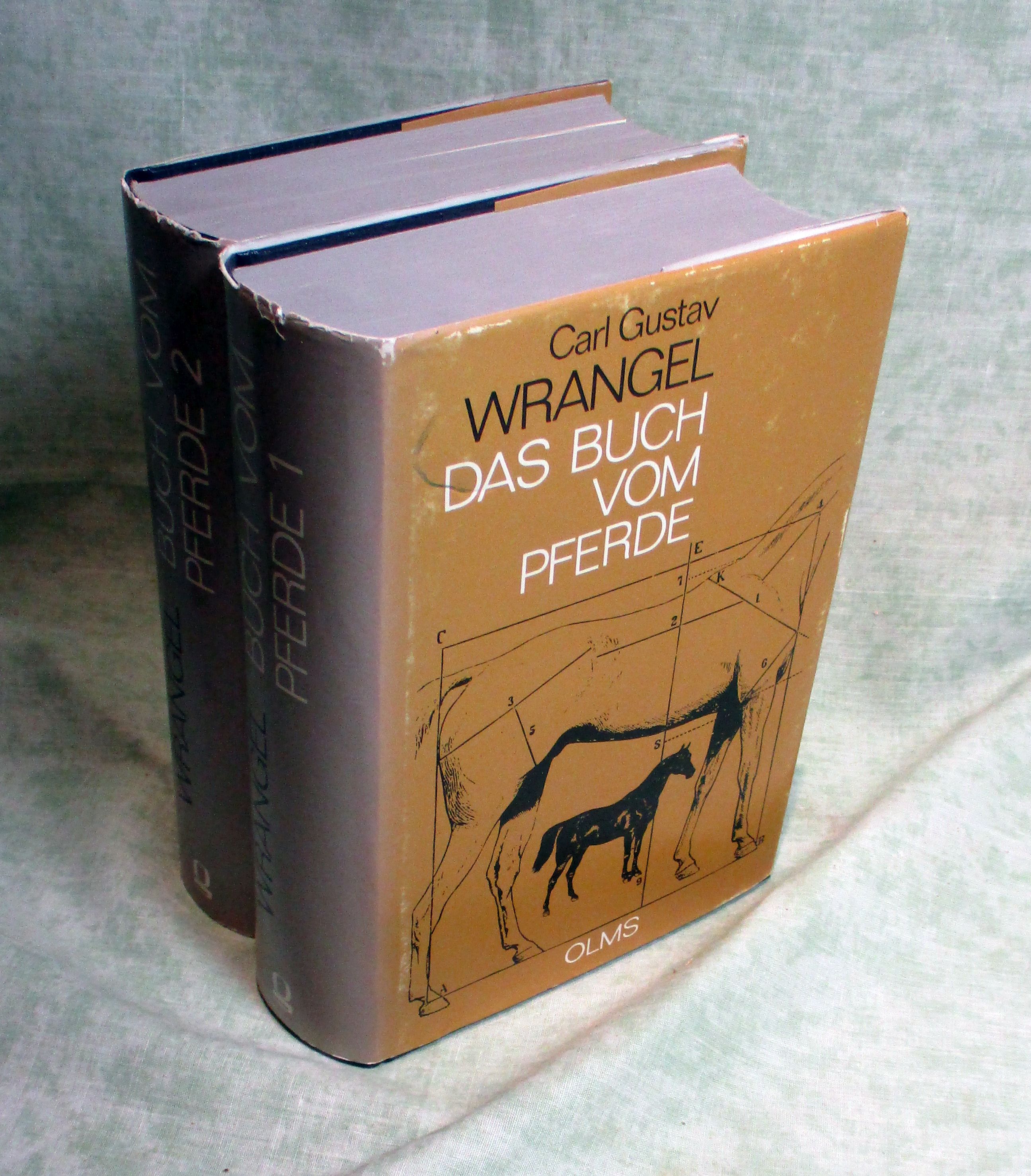 Pferde + Reiten + Gespannfahren Wrangel, Carl Gustav: Das Buch vom Pferde. Erster und zweiter Band. 2. Nachdruck -Aufl., Nachdruck. der 6. vollständig neu bearb. und verm. Auflage von 1927.. Olms Presse. 1977. Bd. 1: X, 824 Seiten, mit 721 Abb., 10 Tafeln und dem Bildnis des Verfassers. Bd.2: 761 Seiten, 339 Abb, 10 Tafeln. Kunstleder mit goldgepr. Titel und Rücke. Schutzumschläge mit kleinen Randläsuren, insgesamt in gutem Zustand. Documenta Hippologica. Darstellungen und Quellen zur Geschichte des Pferdes.
