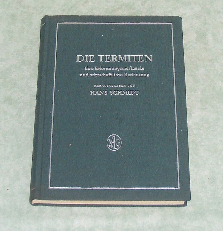 Entomologie – Insektenkunde Schmidt, H. Die Termiten – Ihre Erkennungsmerkmale und wirtschaftliche Bedeutung. Geest & Portig. Leipzig. 1955. 309 Seiten. 120 Abb. Originalleinen. Schutzumschlag mit Randläsuren, Exlibris am Innendeckel.