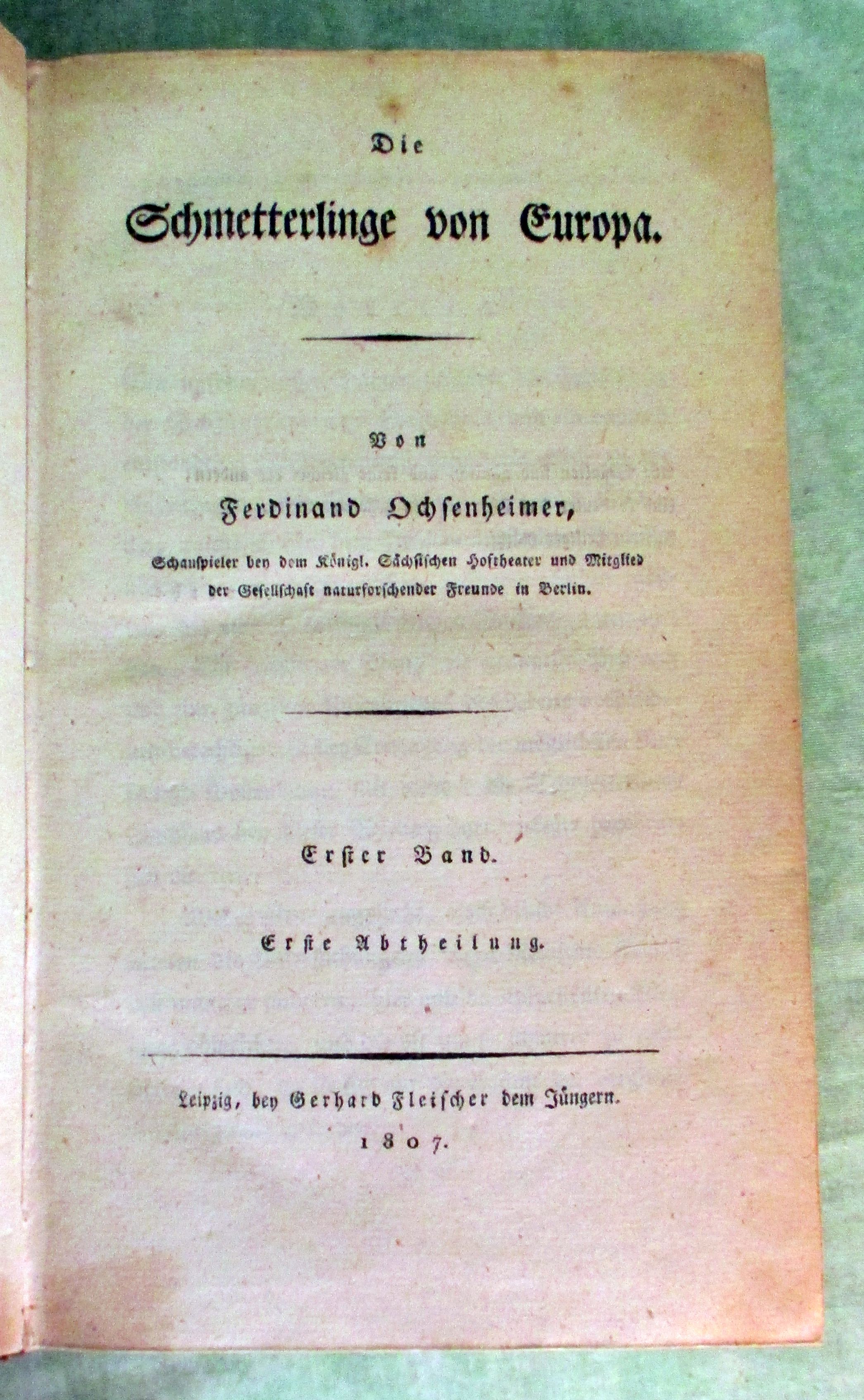 Lepidoptera – Schmetterlinge Treitschke, F. Die Schmetterlinge von Europa. (Fortsetzung des Ochsenheimer’schen Werks). 10 Teile in 11 Bänden. Fleischer. Leipzig. 1807-1835. 8°. Halbleder der Zeit mit goldgepr. Rücken. Rückenschildchen nur mehr rudimentär vorhanden. Einbände berieben, Ecken bestossen. Bindung fest, innen sauber und fleckenfrei. Georg Friedrich Treitschke (1776-1842) war Schauspieler, Direktor des Theaters an der Wien. und Verfasser zahlreiche Bühnenstücke und Opernlibretti. Der Nachwelt in Erinnerung blieb er vor allem als Verfasser des „Fidelio“-Librettos. Neben seiner beruflichen Tätigkeit am Theater galt seine Liebe der Entomologie. Mit der Vollendung des Ochsenheimerischen Werkes schuf er für lange Zeit das umfangreichste Werk über europäische Lepidopteren in deutscher Sprache. Komplett äusserst selten!