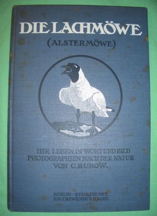 Ornithologie – Vogelkunde Rubow, C. Die Lachmöwe. (Alstermöwe) Ihr Leben in Wort und Bild. Photographien nach der Natur. Berlin-Steglitz. Eduard Trewendt’s Nachf. 1912 58 Seiten, 36 Abb. Illustr. Originalleinen. Leicht stockfleckig. Stempel am Vorsatz und Titel.