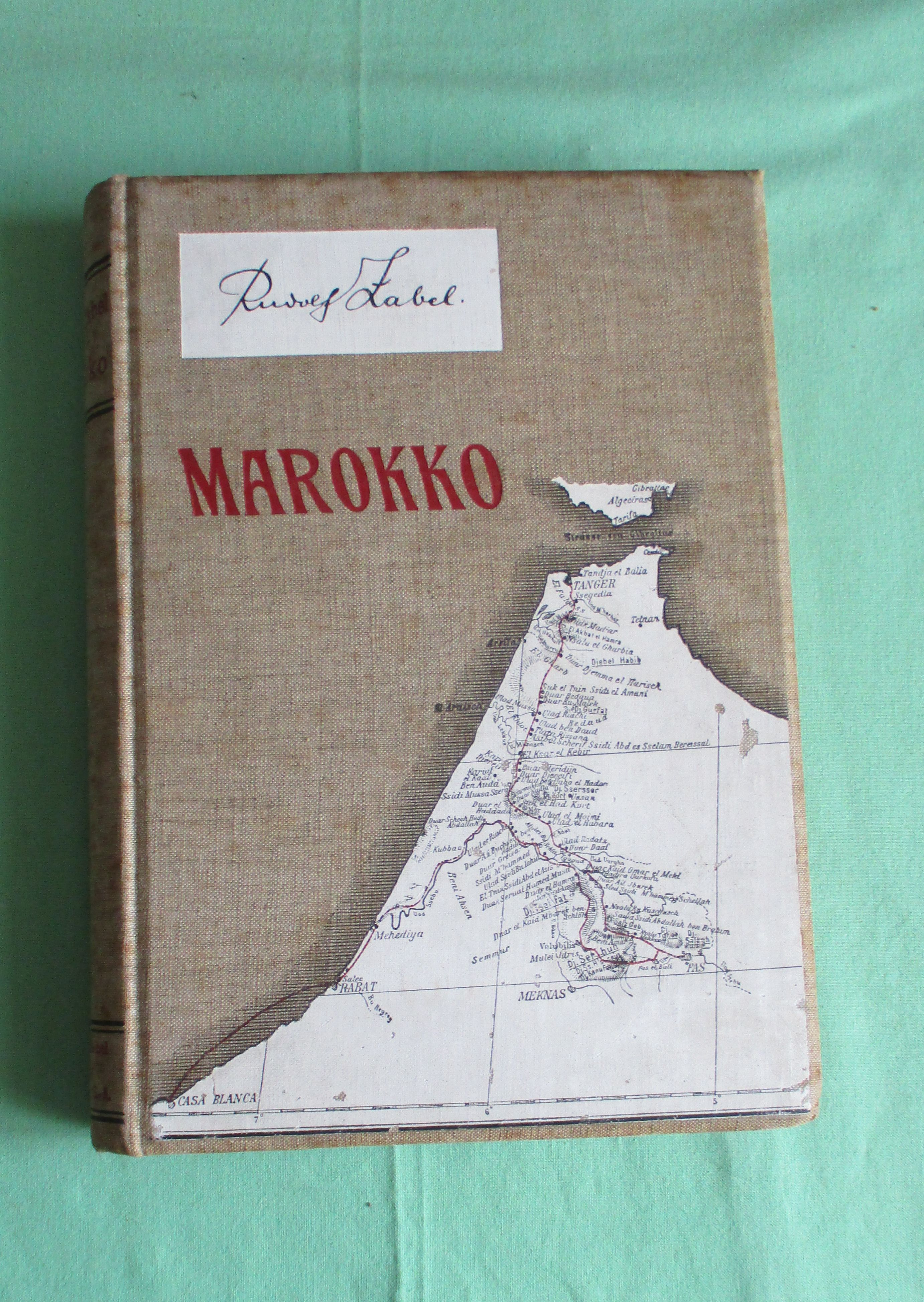 Reise- + Expeditionsberichte Zabel, Rudolf. Im muhammedanischen Abendlande. Tagebuch einer Reise durch Marokko. Altenburg. Stephan Geibel Vlg. 1905. XIII.463 Seiten.Mit 5 Karten bzw. Kartenskizzen und 146 Abb. nach eigenen topographischen und photographischen Aufnahmen des Verfassers nebst einem Anhang von Dr. Paul Range, enthaltend die geologische Bearbeitung der vom Verfasser mitgebrachten Gesteinsproben. ILustr. Originalleinen. Einband leicht fleckig. Seiten und Schnitt zum Teil mit Stockflecken. Gesamtgesehen aber durchaus sammelwürdiges Ex.