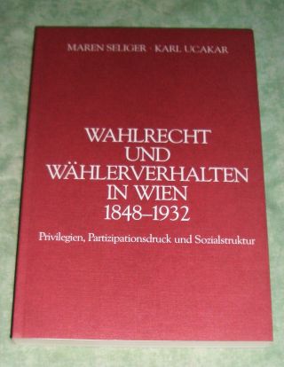 Wien – Landeskunde Seliger, Maren/Ucakar, Karl. Wahlrecht und Wählerverhalten in Wien 1848-1932. Privilegien, Partizipationsdruck u. Sozialstruktur. Wien/München. Jugend und Volk. 1984. 23 cm. 271 Seiten. Paperback. Kommentare zum Historischen Atlas von Wien ; 3.