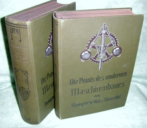 Maschinenbau Häntzschel, Walter. Die Praxis des modernen Maschinenbaues. Gemeinverständliche Darstellung der technischen Grundlagen und Praktiken des Maschinenbaues. 11. Auflage. 2 Bände. Berlin. Weller. 1921. XVI. 804. VIII. 892 Seiten. Originalleinen. Einbände leicht berieben, insgesamt gute Ex. Ohne den (zumeist fehlenden) Modellatlas.