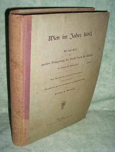Wien – Landeskunde Renner, Viktor von. Wien im Jahre 1683. Geschichte der zweiten Belagerung der Stadt durch die Türken im Rahmen der Zeitereignisse. Aus Anlaß der zweiten Säcularfeier verfaßt im Auftrage des Gemeinderates der k.k. Reichshaupt- und Residenzstadt Wien. Wien. Vlg. R. v. Waldheim. 1883. XVII. 487 Seiten, 24 teils mehrfach gefalt. xylographierte Tafeln. Halbleinen. Einband leicht fleckig, Ecken leicht bestossen, insgesamt ein gutes Ex.
