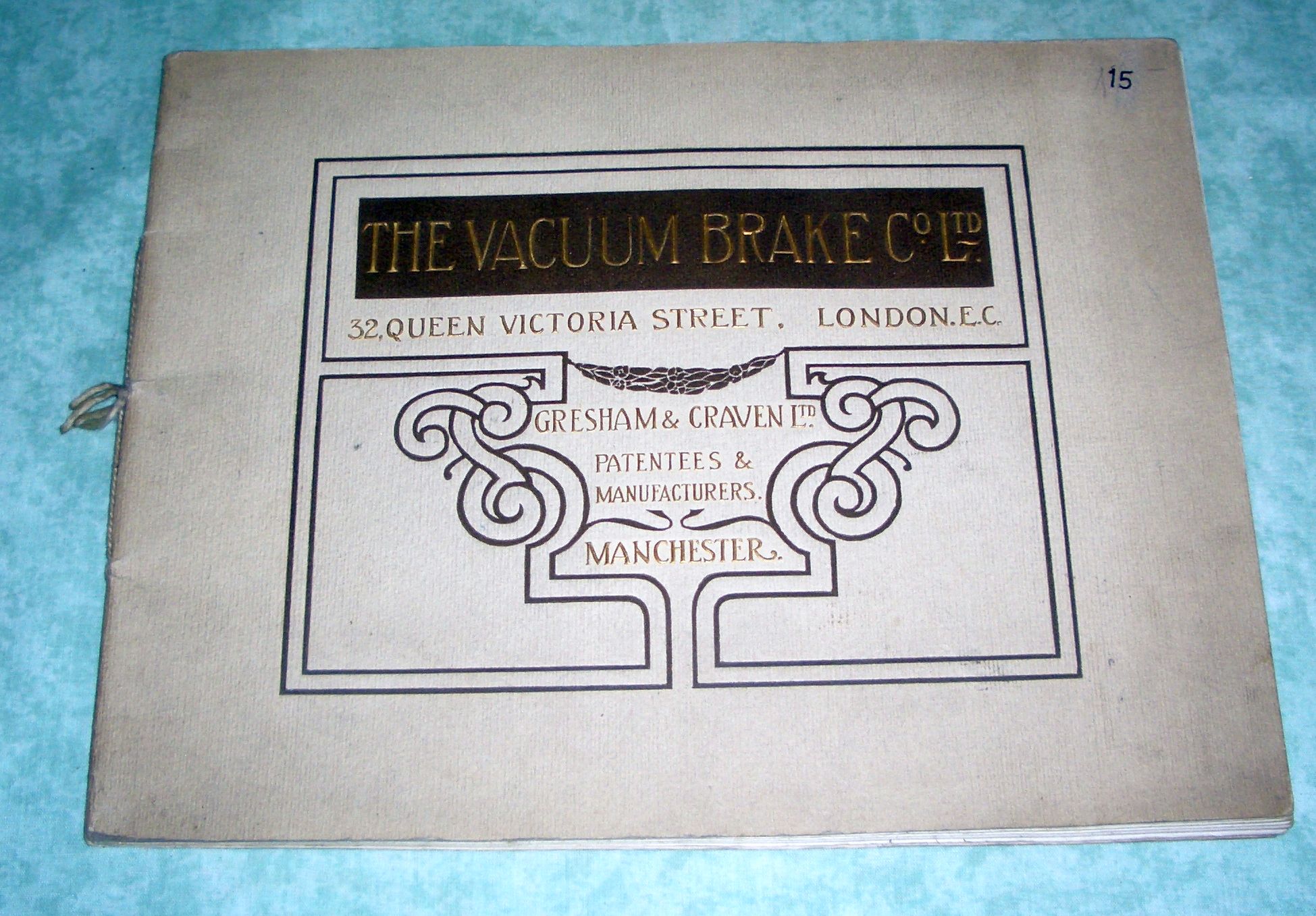 Eisenbahn The Vacuum Brake Co. Ltd. 32 Queen Victoria Street, London – Gresham Craven Ltd. (Patentees & Manufactors), Manchester. Um 1890. 29 x 22 cm. 40 Seiten, durchgehend illustriert. Goldgepr. Originalkarton – Kordelbindung. Umfangreicher Firmenkatalog in sehr guter Erhaltung. Gresham & Craven war von 1869 bis 1954 ein englischer Maschinenhersteller in Manchester Zu seinen Produkten gehörten Bremssysteme für Lokomotiven und Nähmaschinen. 1879 gründete sich in London die Vacuum Brake Company, die Patente erwarb und eine Vertriebsorganisation aufbaute, jedoch über keine eigene Fertigung verfügte. Gresham & Craven wurde für 75 Jahre alleiniger Lieferant der Vacuum Brake Company, die alle Aufträge finanzierte und die Exportrisiken übernahm.