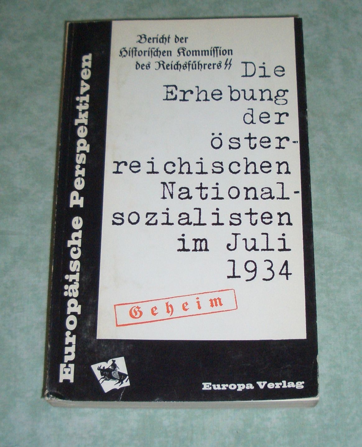 Österreich – Geschichte – Zeitgeschichte Die Erhebung der österreichischen Nationalsozialisten im Juli 1934. Akten der Historischen Kommission des Reichsführers SS. Europa Verlag. 300 Seiten. Paperback. Widmungskarte des ÖGB am Innendeckel. Mit leichten Gebrauchsspuren.