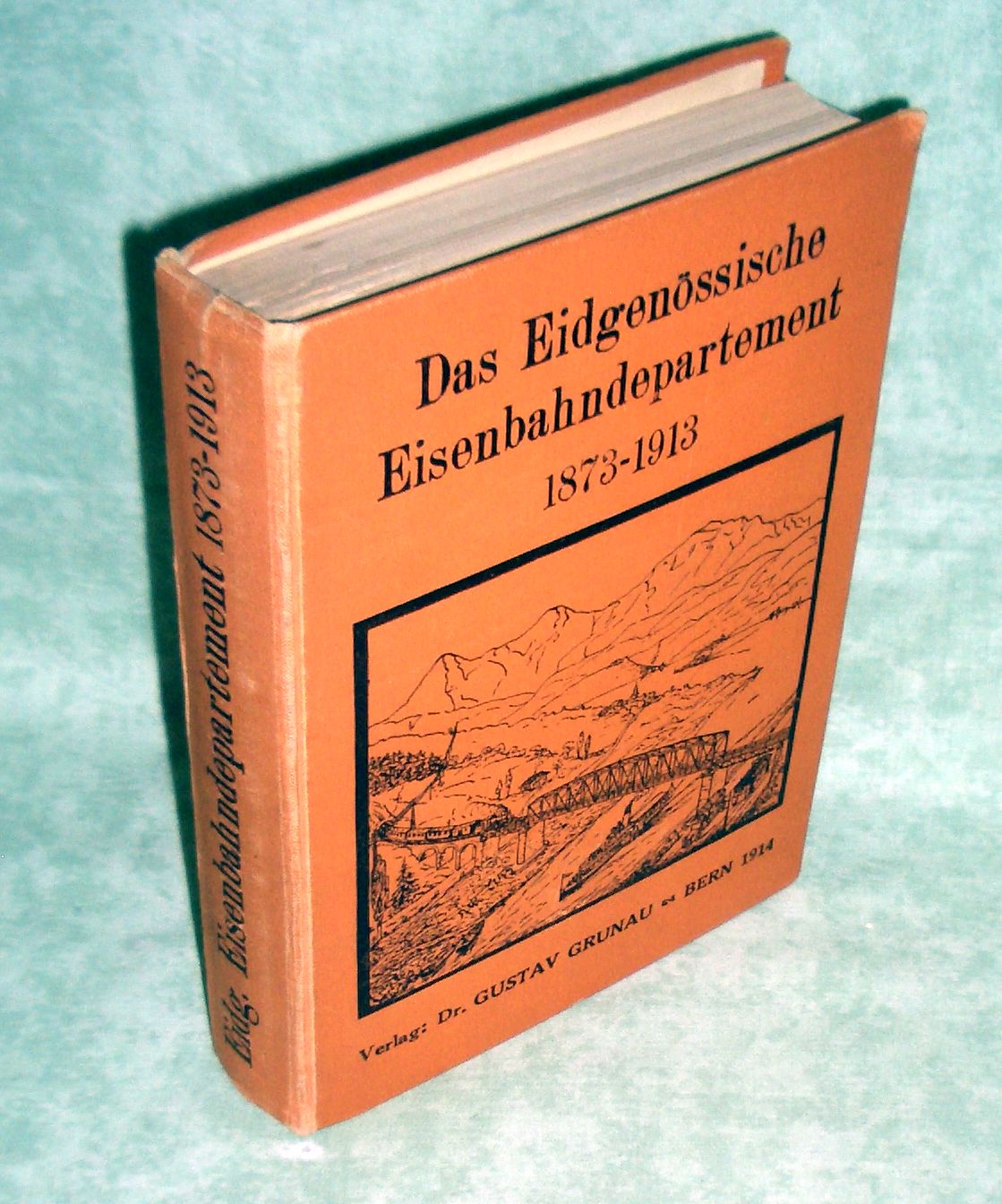 Eisenbahn Schumacher, F. Das eidgenössische Eisenbahndepartment. Seine Tätigkeit und Entwicklung 1873-1913. Bern. Grunau. 1914 338 Seiten, zahlr. Tafeln. Leinen. Vorbesitzername am Innendeckel.