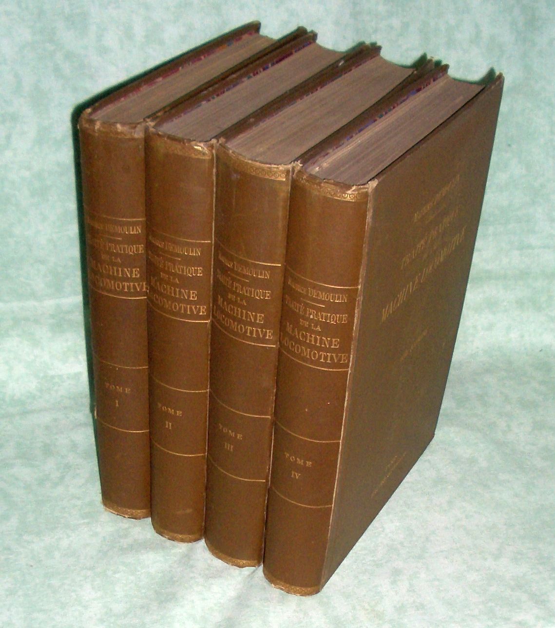 Eisenbahn Demoulin, Maurice: Traité pratique de la machine locomotive. Contenant Les Principes généraux relatifs à l’étude et à la construction des locomotives, la description des types les plus répandus, l’étude de la combustion, de la production et de l’utilisation de la vapeur, du rendement, des conditions de fabrication et de réception des matériaux, des proportions et du mode de construction des organes. 4 vol. – complete. Paris. Baudry & Cie. 1898. XII. 457.510.551.459 pp., 973 illustr., 6 foldout plates. cloth. edges bumped, former owners name on endpapers. At all fine! Übersetzung des Titels: „Praktische Abhandlung über die Lokomotiven. Mit den allgemeinen Grundsätzen für die Konzeption und den Bau von Lokomotiven, die Beschreibung der am weitesten verbreiteten Typen, den technischen Voraussetzungen für die Verbrennung, Erzeugung und Verwendung von Dampf, dem Wirkungsgrad, den Herstellungsbedingungen der Materialien, Proportionen und Bauweise der Teile.“