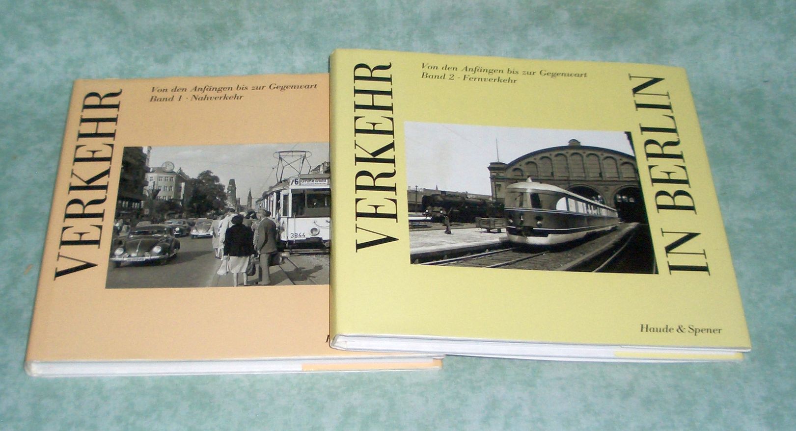 Eisenbahn Landesbildstelle Berlin. Verkehr in Berlin. Von den Anfängen bis zur Gegenwart. Band 1 – Nahverkehr. 163 Fotos aus dem Bildarchiv der Landesbildstelle. Band 2 – Fernverkehr. 164 Fotos aus dem Bildarchiv der Landesbildstelle. 2 Bände. Haude & Spener. Berlin. 1987 jeweils 120 Seiten. Leinen mit Schutzumschlag. Kleiner Vorbesitzerstempel am Vorsatz. Bei Band 1: Inkomplettes Vorsatzblatt. (Produktionsfehler).