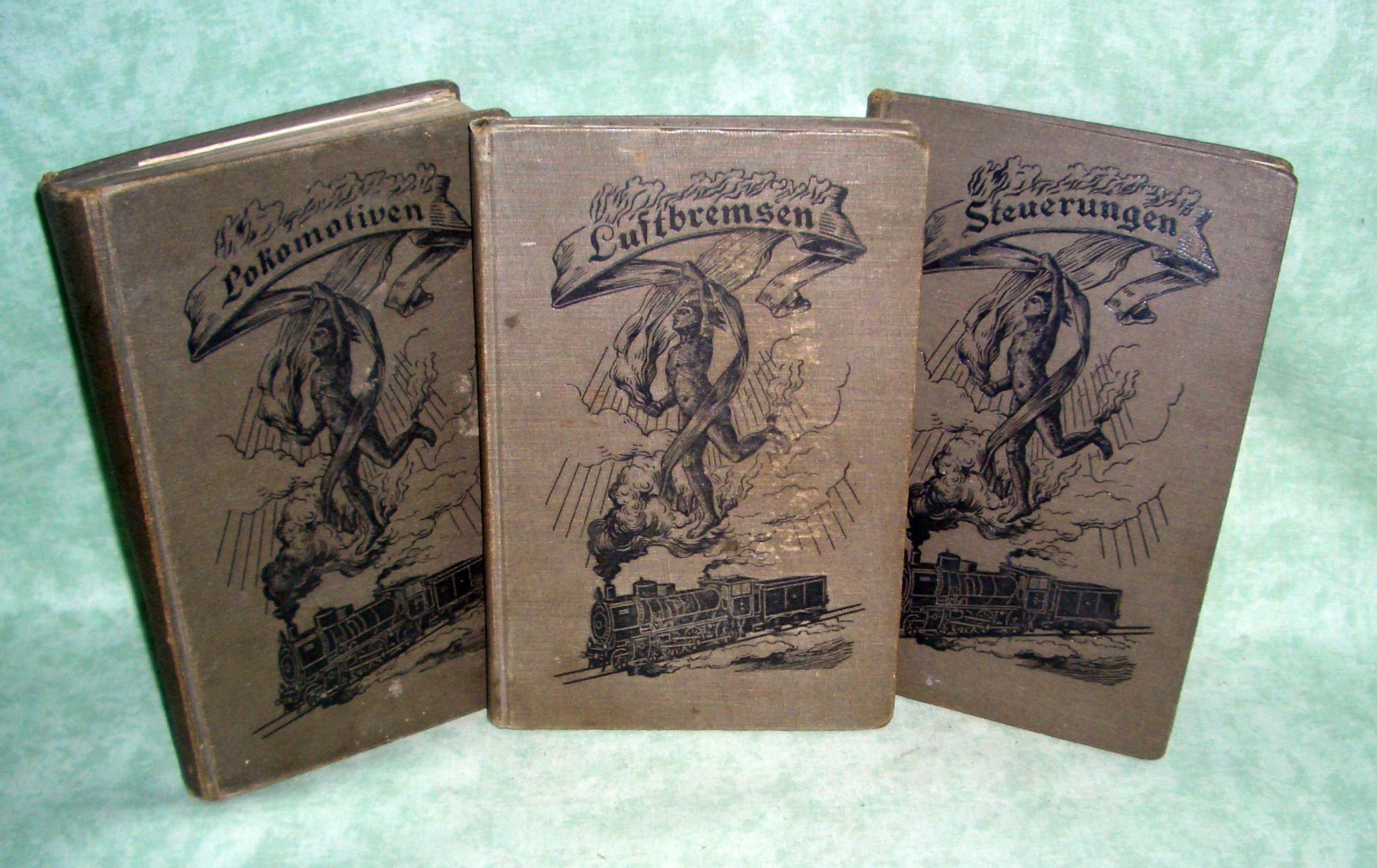Eisenbahn Heumann – Bode – Der praktische Lokomotivbeamte. I. Teil: Die Lokomotive (Insbesondere der Lokomotivkessel und seine Ausrüstung) X. 279 Seiten, 143 Abb. XXI ausfaltbare Tafeln. II. Teil: Die Luftbremsen. VIII. 144 Seiten, 41 Abbildungen, 14 ausfaltbare Tafeln. III. Teil: Die Steuerungen der Lokomotiven.VIII. 138 Seiten. 132 Abb., 6 Tafeln. I. und III. TeiL: 3. neu berab. und erw. Auflage. II. Teil: 2. erw. Auflage. 3 Bände. Berlin. Kurt Amthor. 1913-1914. Illustr. Originalleinen. Band 1 mit stärkeren Gebrauchsspuren (Einband berieben, Ecken bestossen) Band 2 und 3 nur leicht berieben