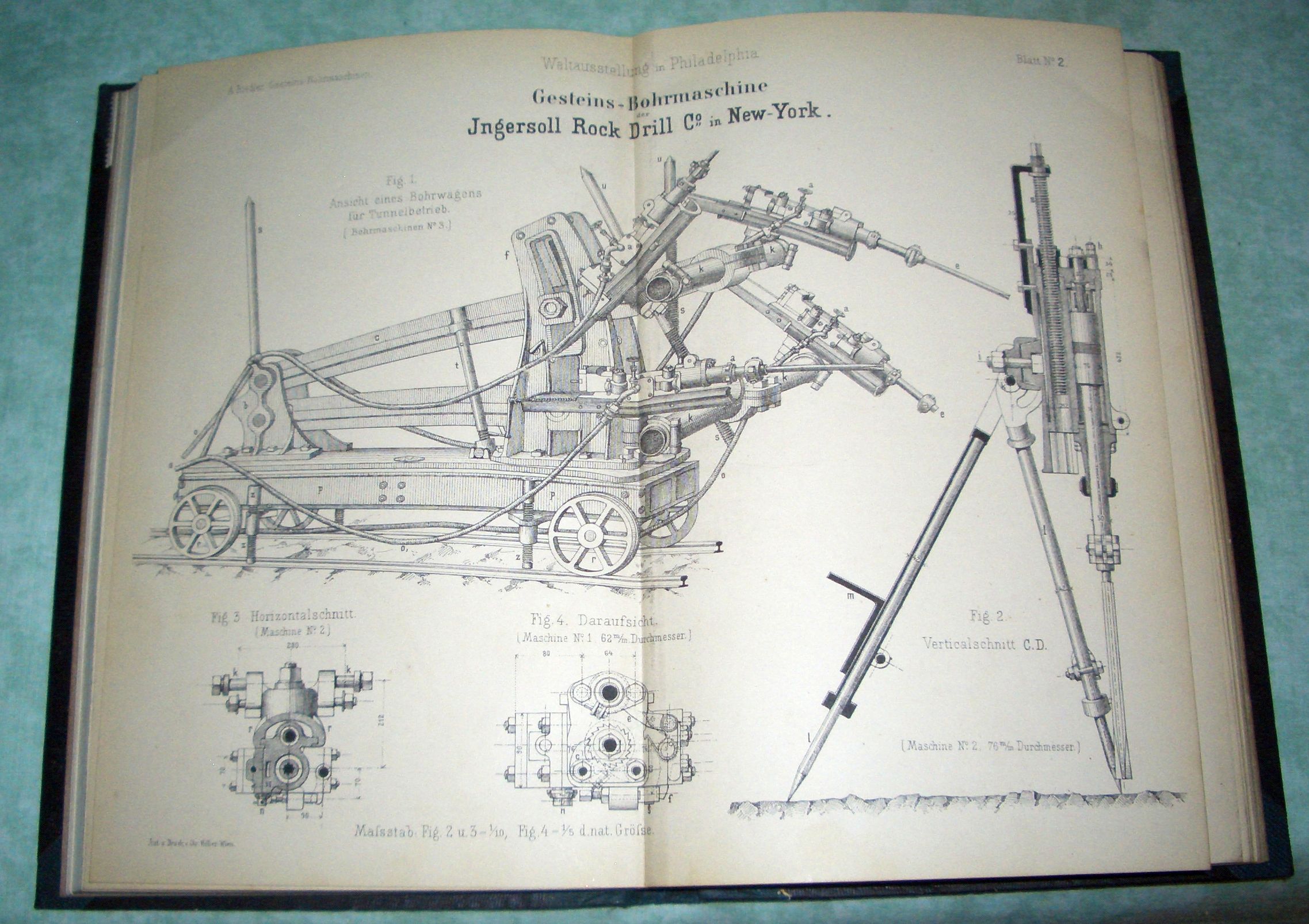 Bergbau – Hüttenwesen Riedler, Alois: Gesteins-Bohrmaschinen und Luftcompressions-Maschinen. Wien Faesy & Frick. 1877. 148 Seiten, insgesamt 20 doppelblattgrosse lithogr. Tafeln Späteres Halbleinen mit goldgepr. Rücken. Zahlreiche Bibliotheksstempel am Titel und den Vorsätzen, ansonsten sauber und anstreichungsfrei. Bericht über die Weltausstellung in Philadelphia 1876, / hrsg. von der Österreichischen Commission für die Weltausstellung in Philadelphia 1876 ; 15.