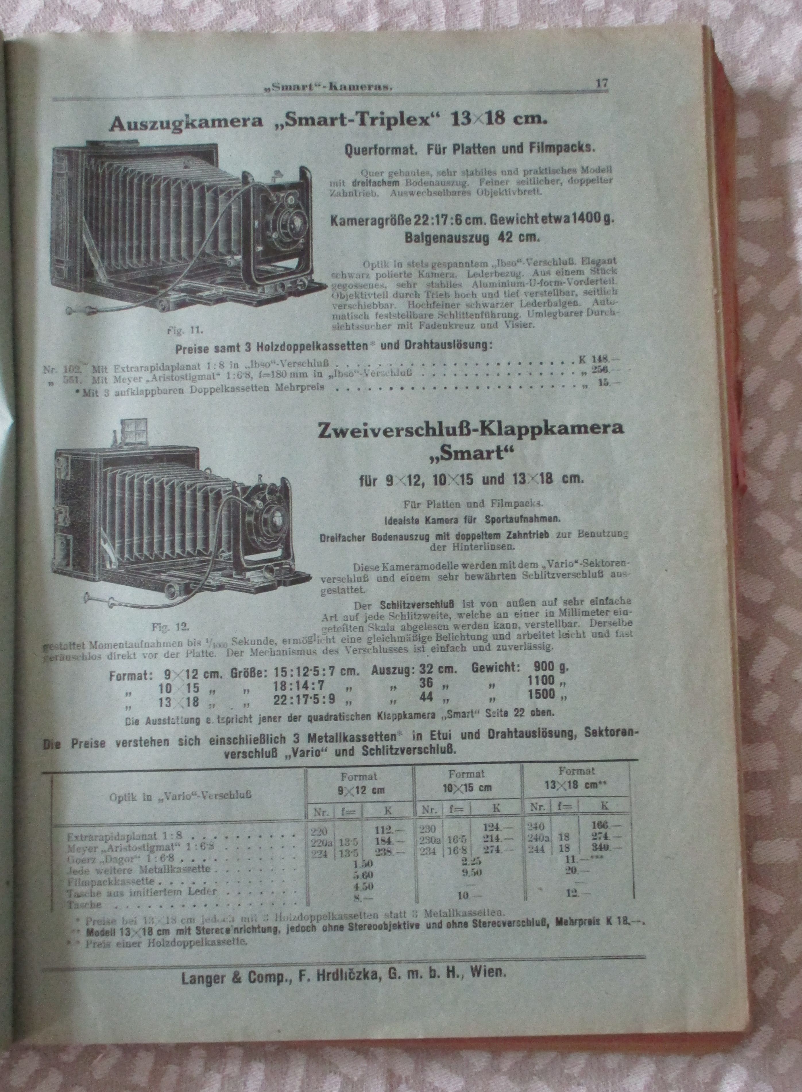 Vereinigte Photographische Industrien. Langer & Comp. F. Hrdliczka G.m.b.H. Prei…
