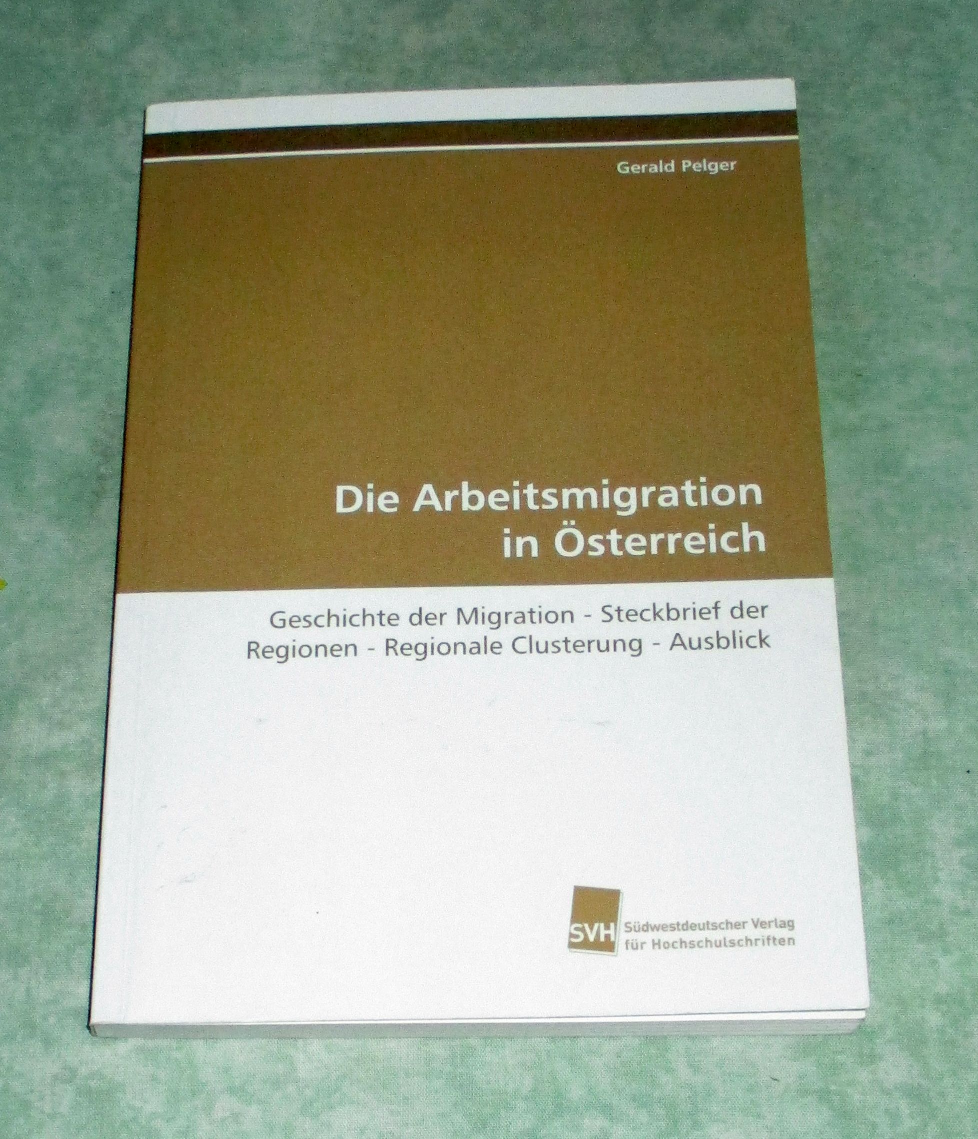 Wirtschafts- und Sozialgeschichte Pelger, Gerald. Die Arbeitsmigration in Österreich. Geschichte der Migration – Steckbrief der Regionen – Regionale Clusterung – Ausblick. Saarbrücken, Suedwestdeutscher Verlag für Hochschulschriften, 2009. 166 Seiten, Textillustr. (Statistiken, Karten usw.) Paperback.
