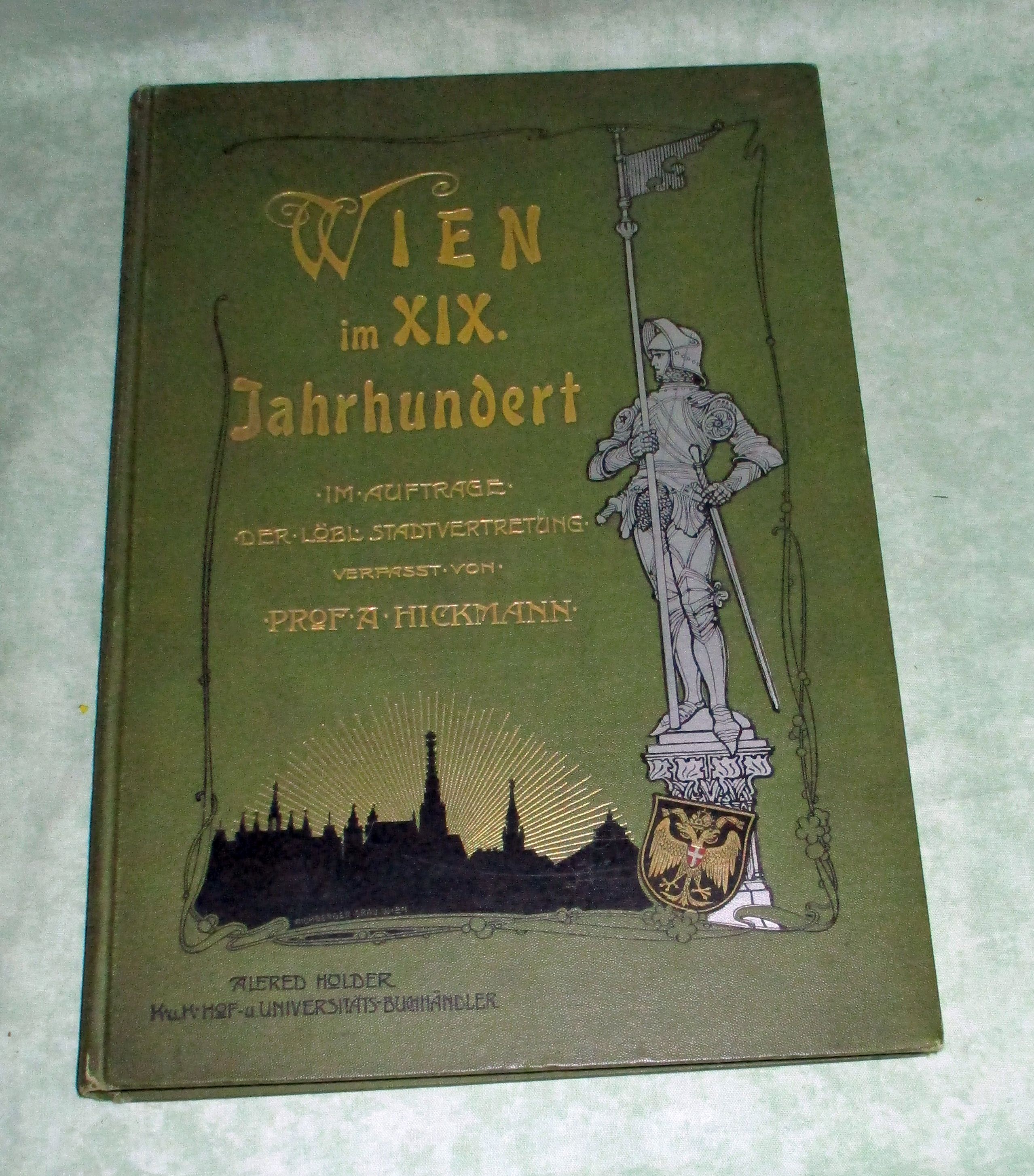Wien – Landeskunde Hickmann, Anton L.: Historisch-statistische Tafeln aus den wichtigsten Gebieten der geistigen und materiellen Entwicklung der k. k. Reichshaupt- und Residenzstadt Wien im neunzehnten Jahrhundert. 41 geographisch-statistische Tafeln im Farbendruck, nebst großem Plan von Wien 1800 – 1900. Wien. Hölder, 1903. 21 x 30,5 cm. 78 Bll. Mit 41 farblith. Tafeln. Mit dem farblithogr. Plan in derLasche anbei ( Plan von Wien 1800-1900 – Größe 62 x 57 cm). Gold- und silbergepr.Originalleinen. In sehr gutem Zustand!