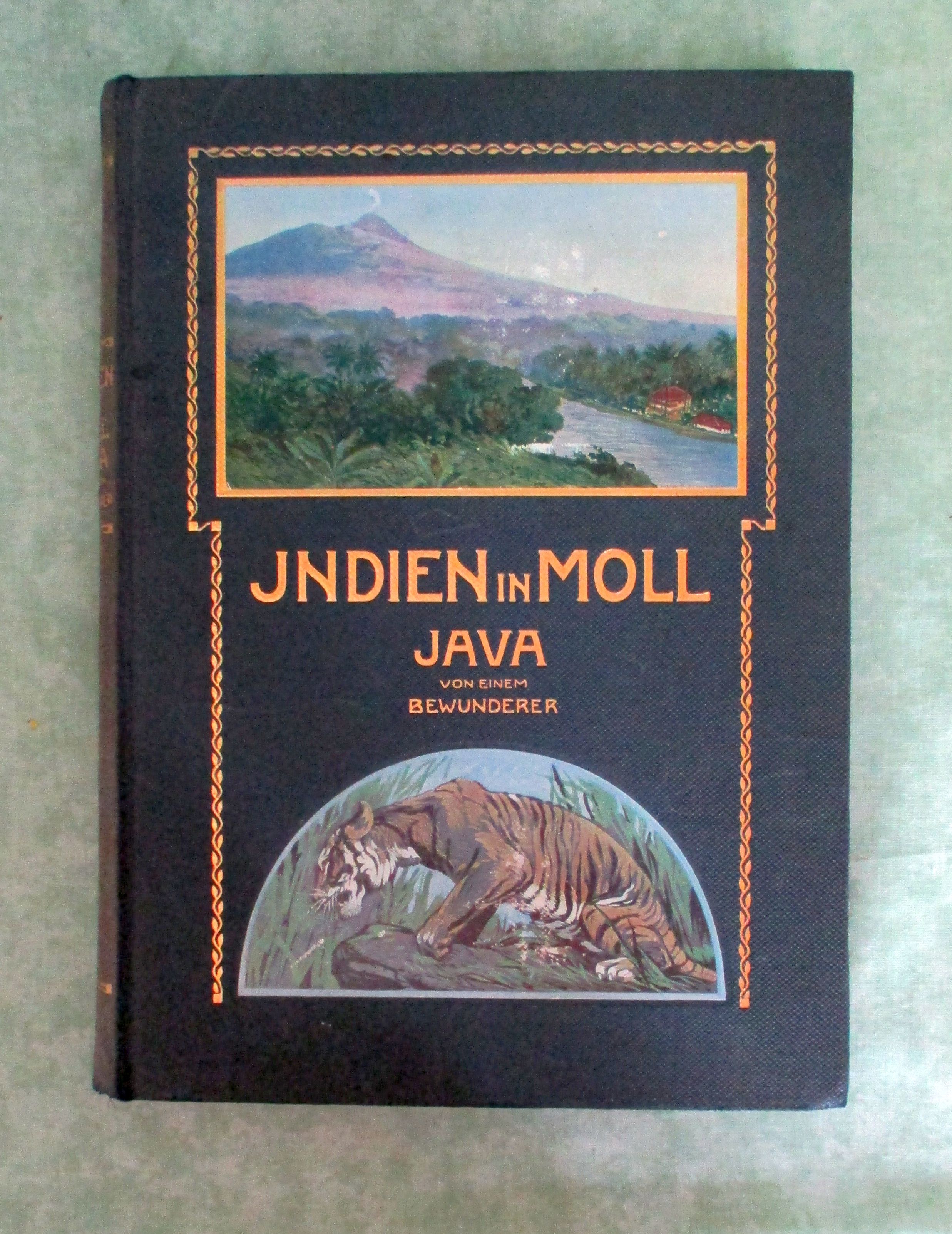 Reise- + Expeditionsberichte (Bremer, Hugo Emil.) Indien in Moll. Java ; Reiseerinnerungen und Betrachtungen. Stuttgart [u.a.], Union Deutsche Verlagsgesellschaft. 1908. VI, 200 Seiten, mit einer Faltkarte, einem gefalteten Panorama, 4 Tafeln und 47 Abbildungen. Goldgepr. illustr. Originalleinen Gutes Ex. ohne Stempel und sonstige Gebrauchsspuren.