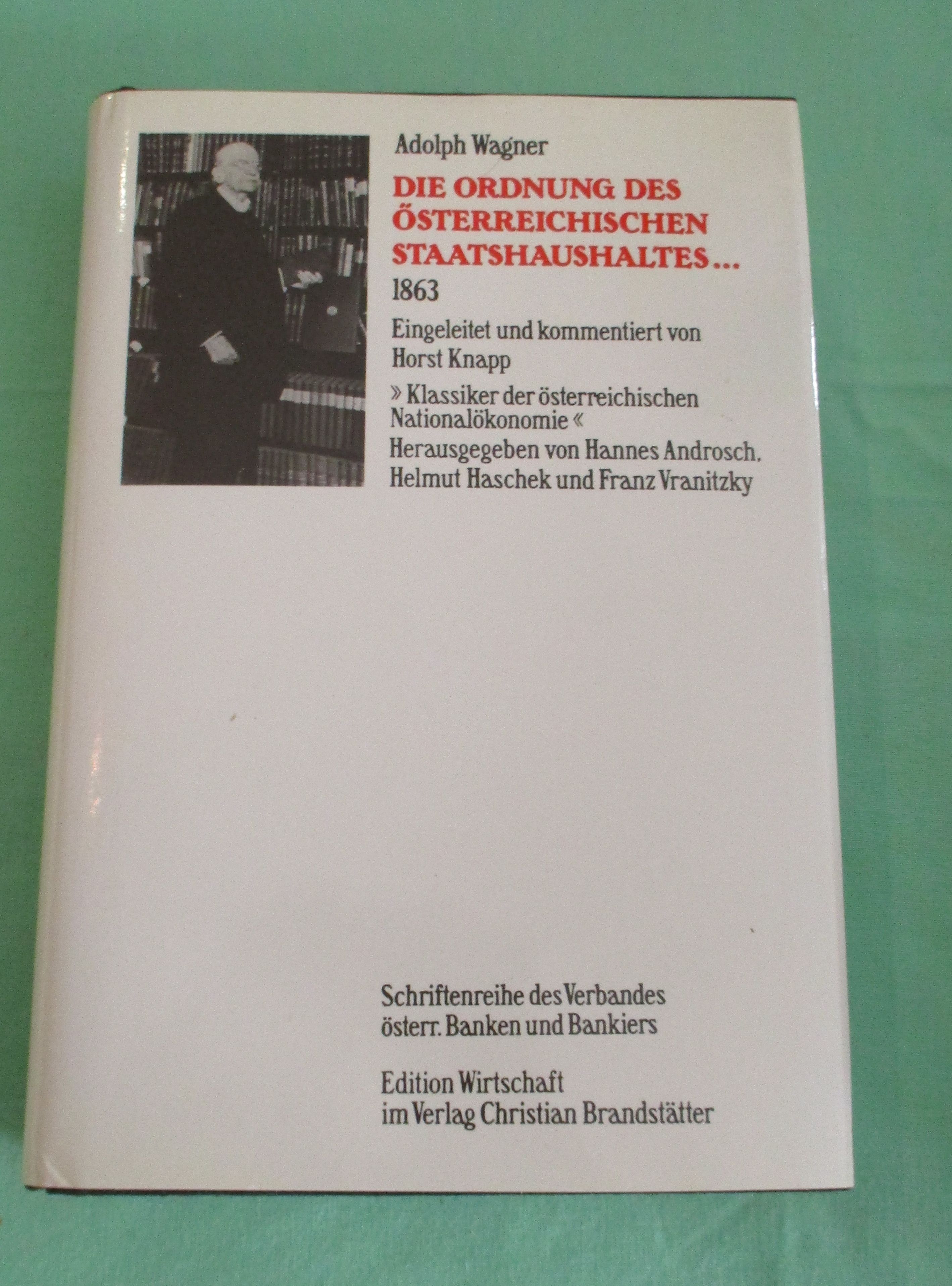 Wirtschafts- und Sozialgeschichte Wagner, Adolph: Die Ordnung des österreichischen Staatshaushaltes. Eingeleitet und kommentiert von Horst Knapp. Nachdr. d. Ausg. Wien 1863. Wien, Ed. Wirtschaft – Vlg. Christian Brandstätter. 1984. 308 Seiten. Leinen mit Schutzumschlag. Klassiker der österreichischen Nationalökonomie, 2.