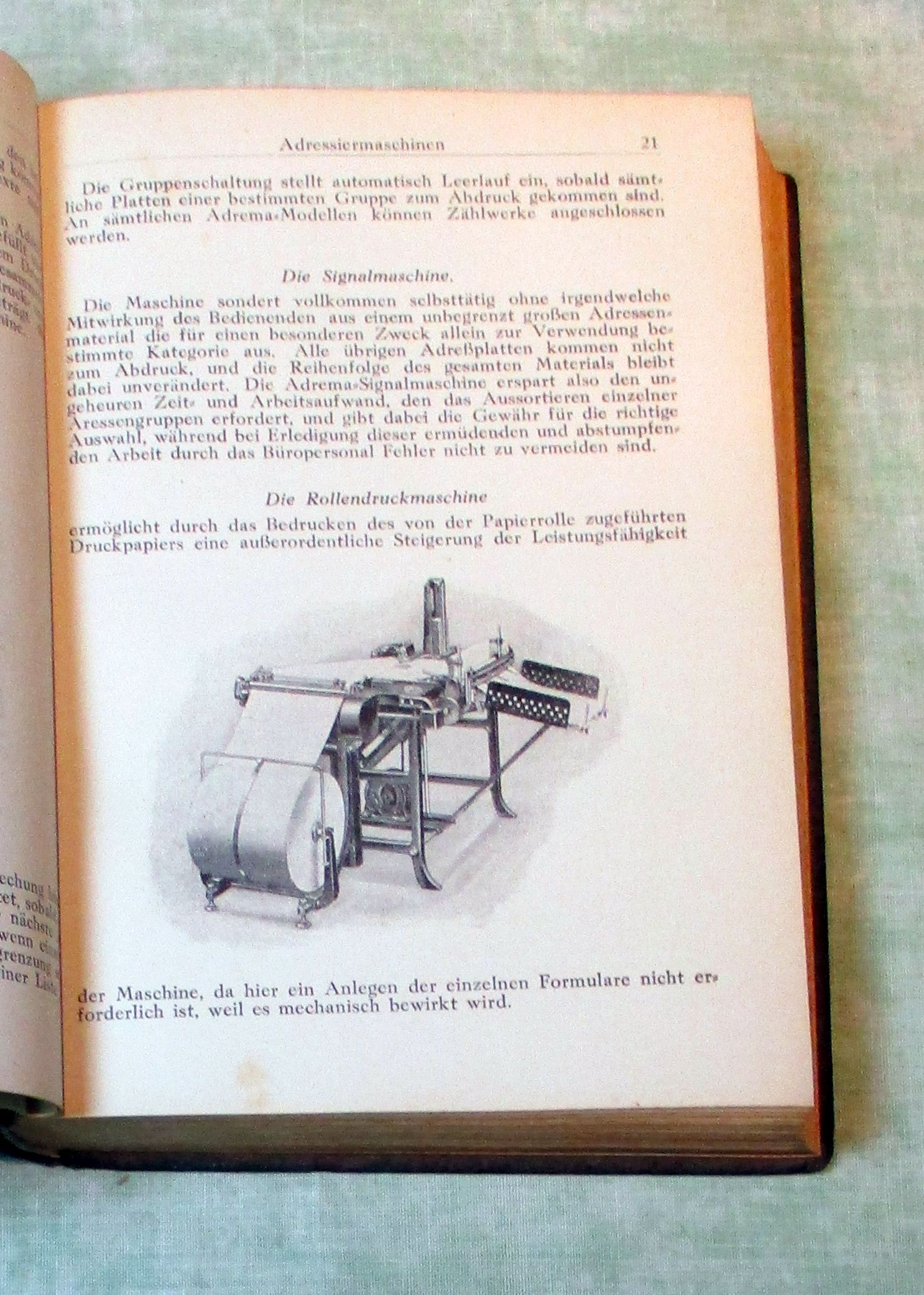 Technik + Technikgeschichte Handbuch der Büromaschinen. Übersicht über die wichtigsten auf dem mitteleuropäischen Markt eingeführten Büromaschinen und Apparate. Berlin. Verlag „Die Büro-Industrie“. 1927. 19 cm. 416 Seiten, durchgehend illustriert. Kunstleinen. Stempel einer Schule am Vorsatz. Mit leichten Gebrauchsspuren. Insgesamt ein gutes E Klassiker aus Industriekultur und Technikgeschichte, . Übersicht über die wichtigsten auf dem mitteleuropäischen Markt eingeführten Büromaschinen und Apparate. Selten!