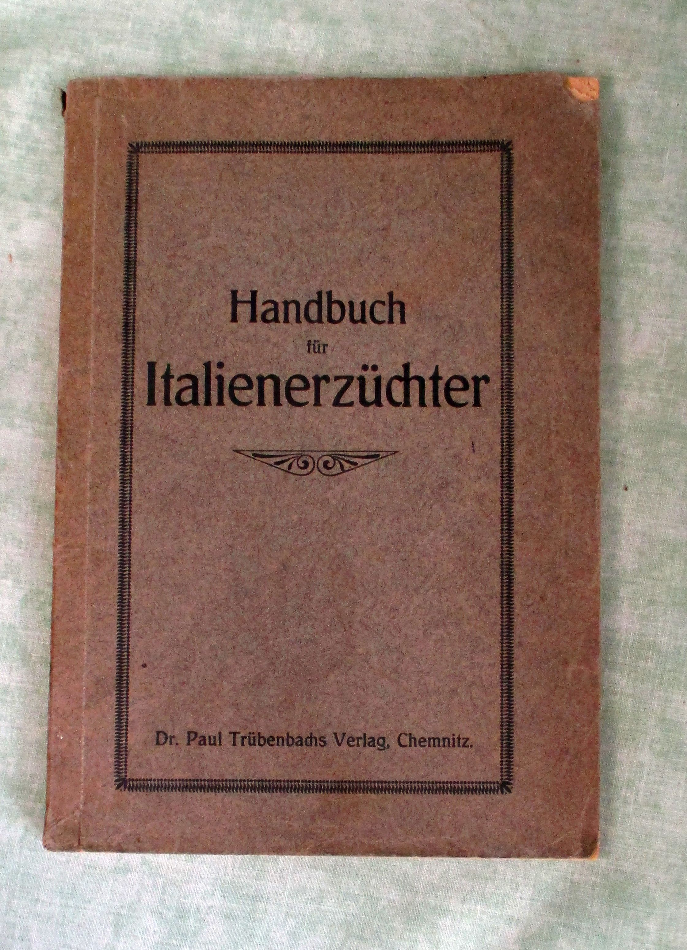 Stubenvögel-, Geflügel-, und Taubenliteratur Wulf, Arthur. Handbuch für Italienerzüchter. Eine ausführliche Anleitung zur Haltung, Zucht und Pflege des Italienerhuhns. Chemnitz. Dr. Paul Trübenbachs Verlag. 109 Seiten, 28 Textabbildungen, 23 farbige Tafeln. kart. Einband mit kleinem Eckabriss. (siehe Bilder)
