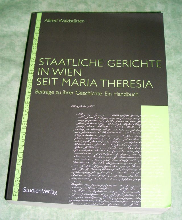 Wien – Landeskunde Waldstätten, Alfred: Staatliche Gerichte in Wien seit Maria Theresia. Beiträge zu ihrer Geschichte ; ein Handbuch. Innsbruck/Wien/Bozen. StudienVerlag. 2011. 24 cm. 440 Seiten. kart. Forschungen und Beiträge zur Wiener Stadtgeschichte ; Bd. 54. Literaturangaben