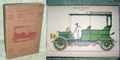 Auto + Motorrad Häntzschel-Clairmont, Walther. Praxis des Kraftwagenbaues. Textband + Modellatlas. Berlin. Hermann Schran & co. 1910. 248 Seiten, 159 Illustrationen. Modellatlas mit 8 Textseiten und 7 farbigen zerlegbaren Modellen auf 4 Tafeln. Gepr. Originalleinen. Einband und einige Textseiten leicht fleckig, auf den Textseiten des Modellatlas ein durchgehender brauner Fleck im unbedruckten Randbereich.