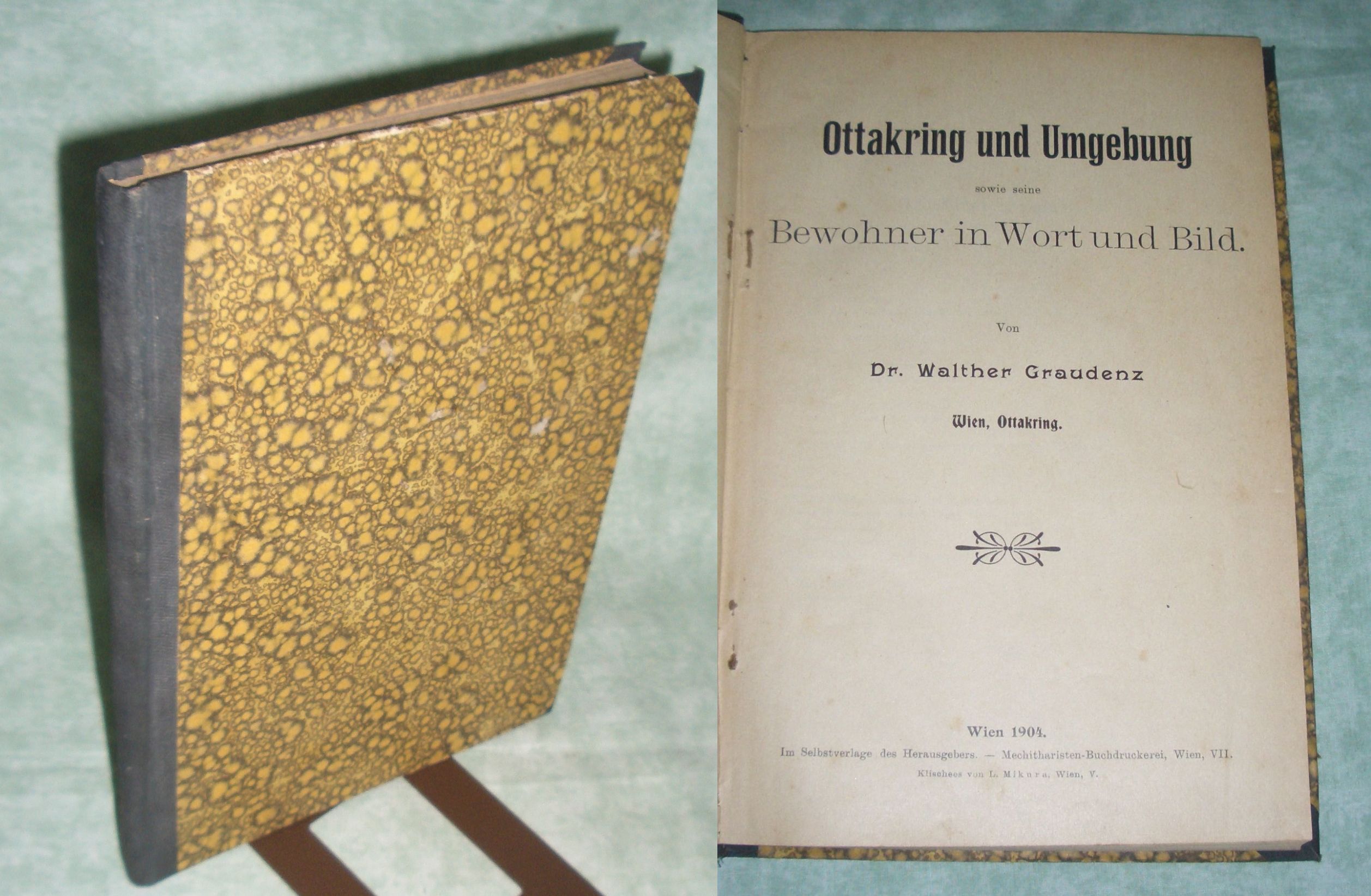 Wien – Landeskunde Graudenz, Walther: Ottakring und Umgebung sowie seine Bewohner in Wort und Bild. 2 Teile in 1 Band. I.: Geschichte. II.: 1. Strassen, Gassen und Plätze. 2. Behörden, öffentliche Anstalten und Vereine. 3. Geschäftsanzeiger. Wien. Im Selbstverlag des Herausgebers. 1904. 148, XCIX SS., zahlr. Abb. Priv. Halbleinen. Einige Seiten minimal fleckig, insgesamt ein gutes Ex.