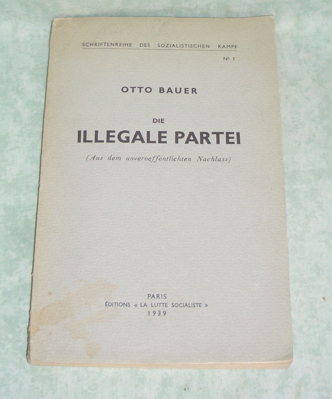 Österreich – Geschichte – Zeitgeschichte Bauer, Otto: Die illegale Partei. (aus dem unveröffentlichten Nachlass). Paris. Éditions „La Lutte Socialiste“. 1939. 205 Seiten. Originalkarton. Einband leicht fleckig. Schriftenreihe des Sozialistischen Kampf, 1.