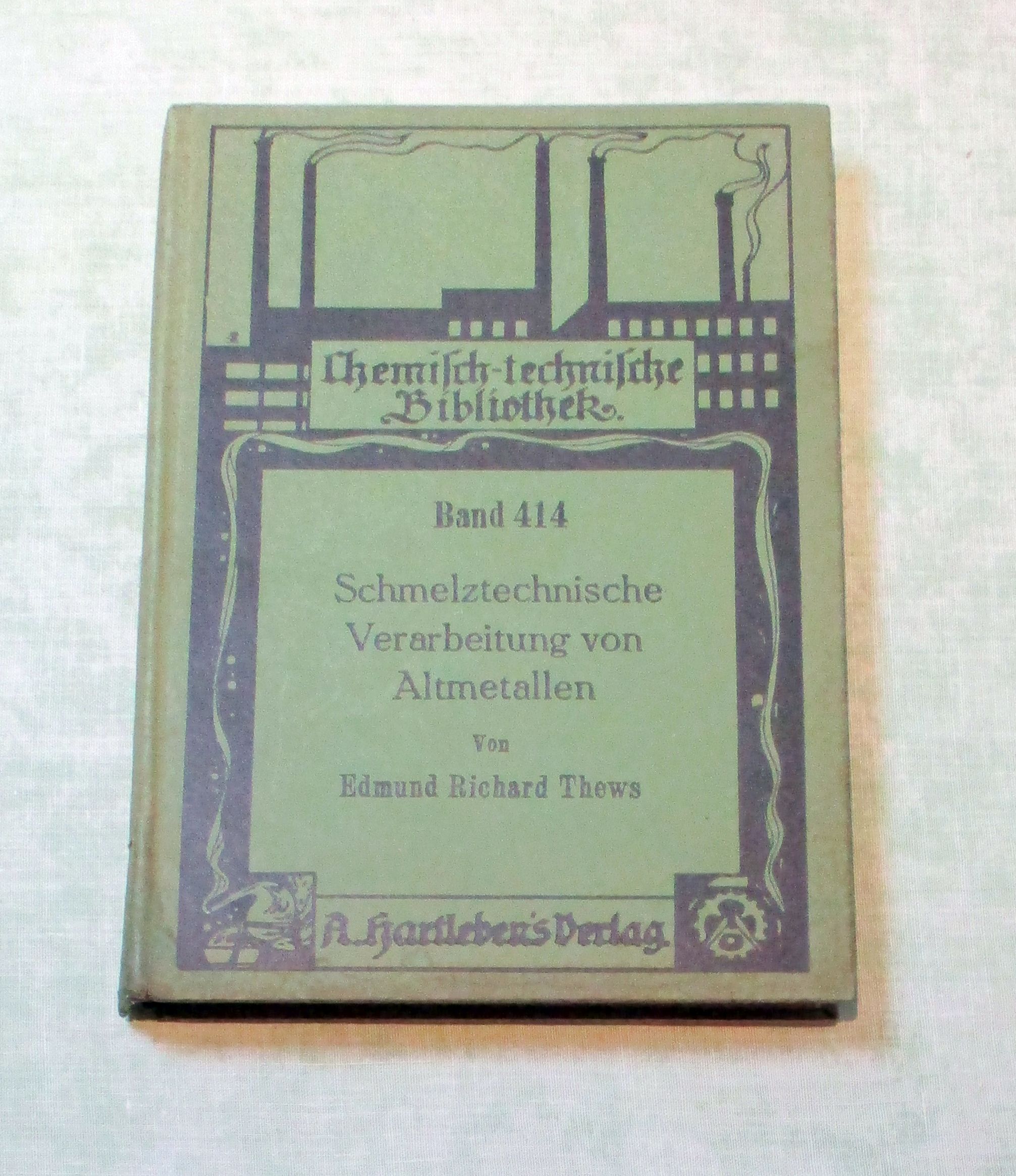 Chemische Technologie Thews, Edmund Richard. Schmelztechnische Verarbeitung von Altmetallen. Wien. Hartleben, 1941. 252 Seiten, 26 Abb. Originalleinen Gut. Chemisch-technische Bibliothek Bd. 414.