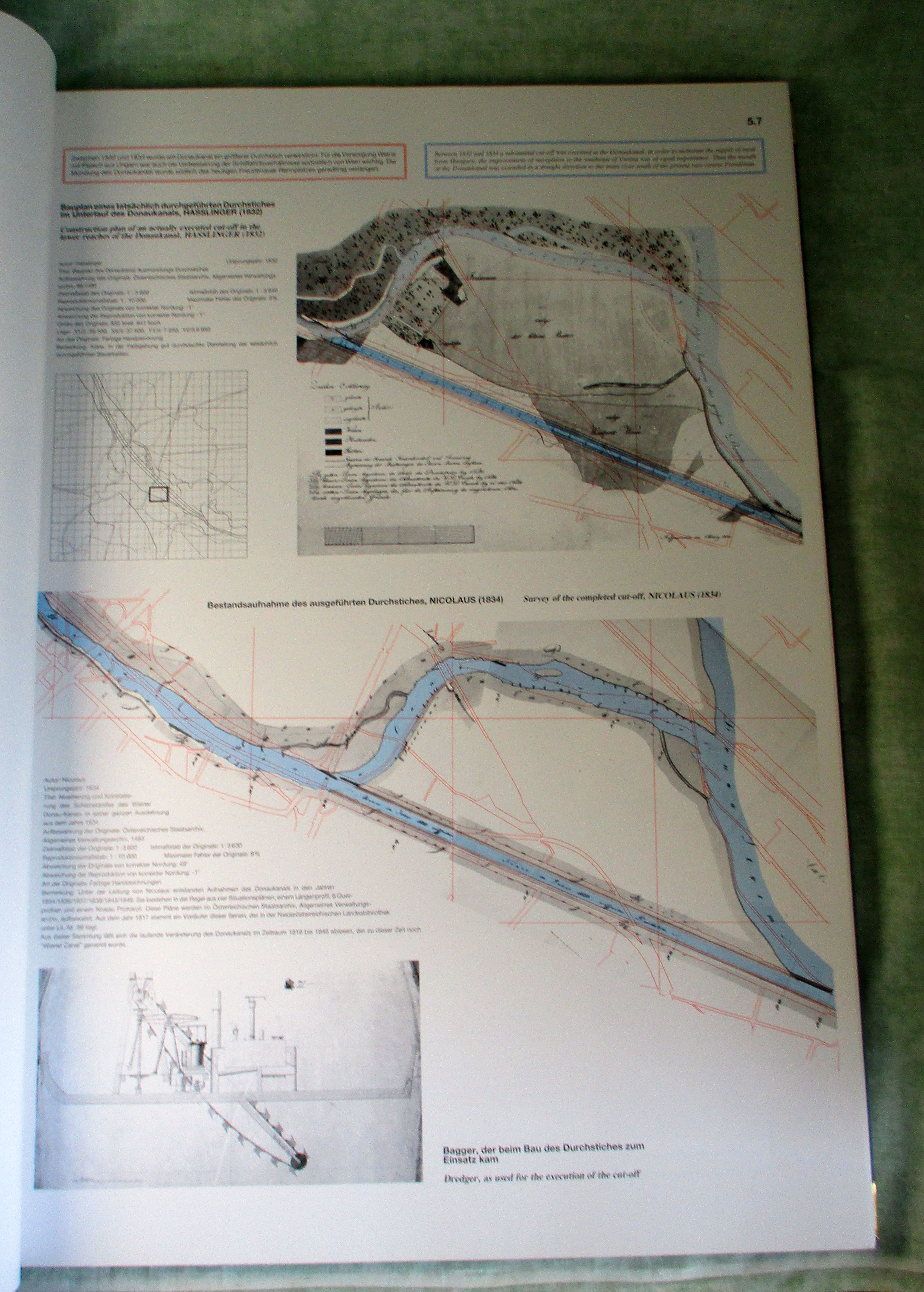 Wien – Landeskunde Mohilla, Peter / Michlmayr, Franz. Donauatlas Wien. Geschichte der Donauregulierung auf Karten und Plänen aus vier Jahrhunderten = Atlas of the Danube River Vienna.A History of River Training on Maps and Plans of four centuries. Wien, Österreichischer Kunst- und Kulturverlag. 1996. 45,5 x 61 cm. Leinen. Ecken mit Messing beschlagen. In sehr gutem Zustand. Äußerst umfangreiches und voluminöses Sammelwerk historischer Karten über die Donau bei Wien. Gewicht ca. 8 kg!